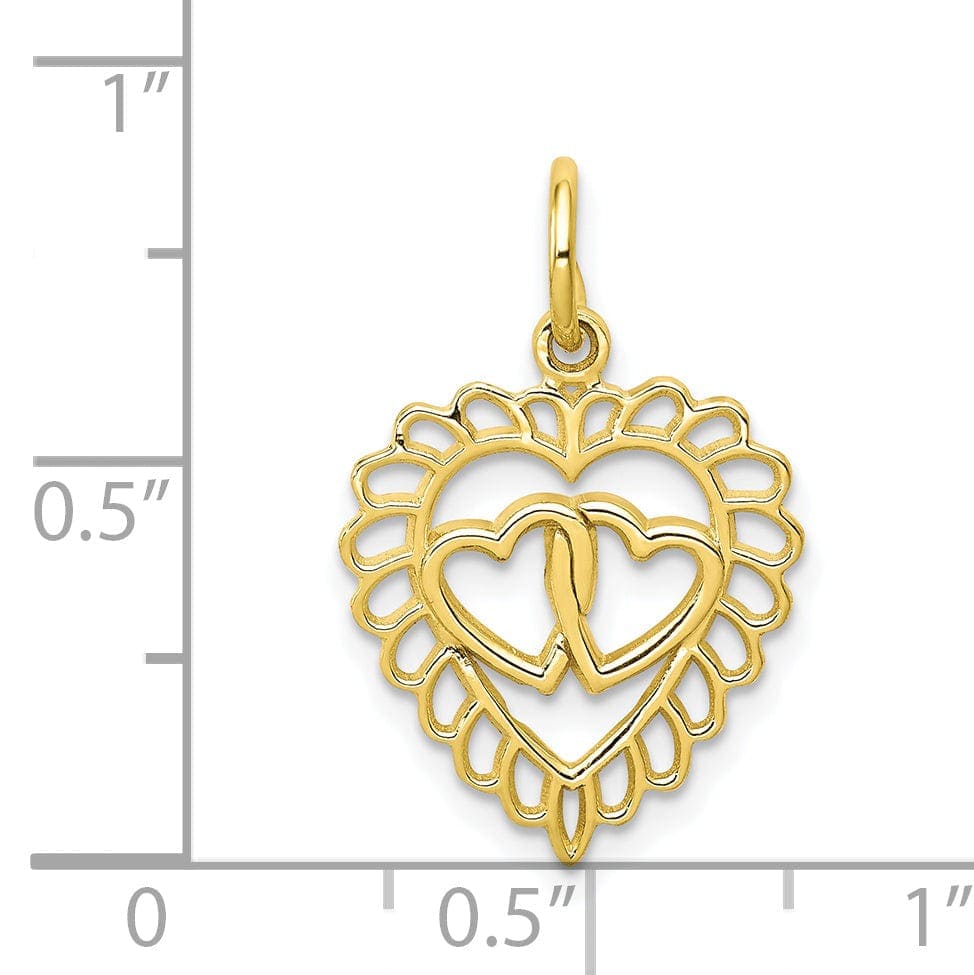 Solid 10k Yellow Gold Heart with Hearts Pendant