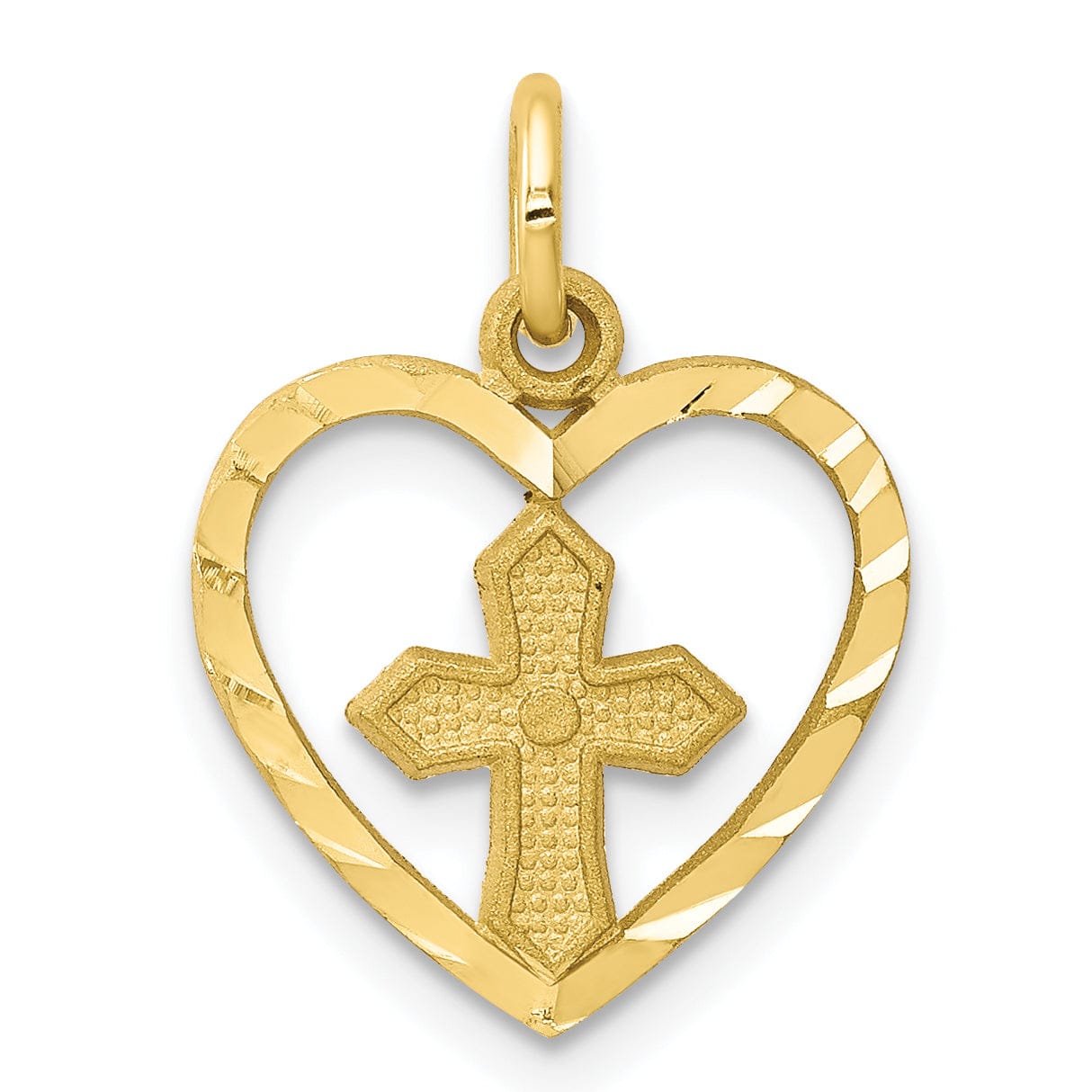 Elegantly crafted from solid 10k yellow gold, this polished cross pendant is a timeless piece of jewelry that will add a touch of sophistication to any outfit. The diamond cut finish adds a subtle sparkle, making it perfect for both casual and formal occasions.