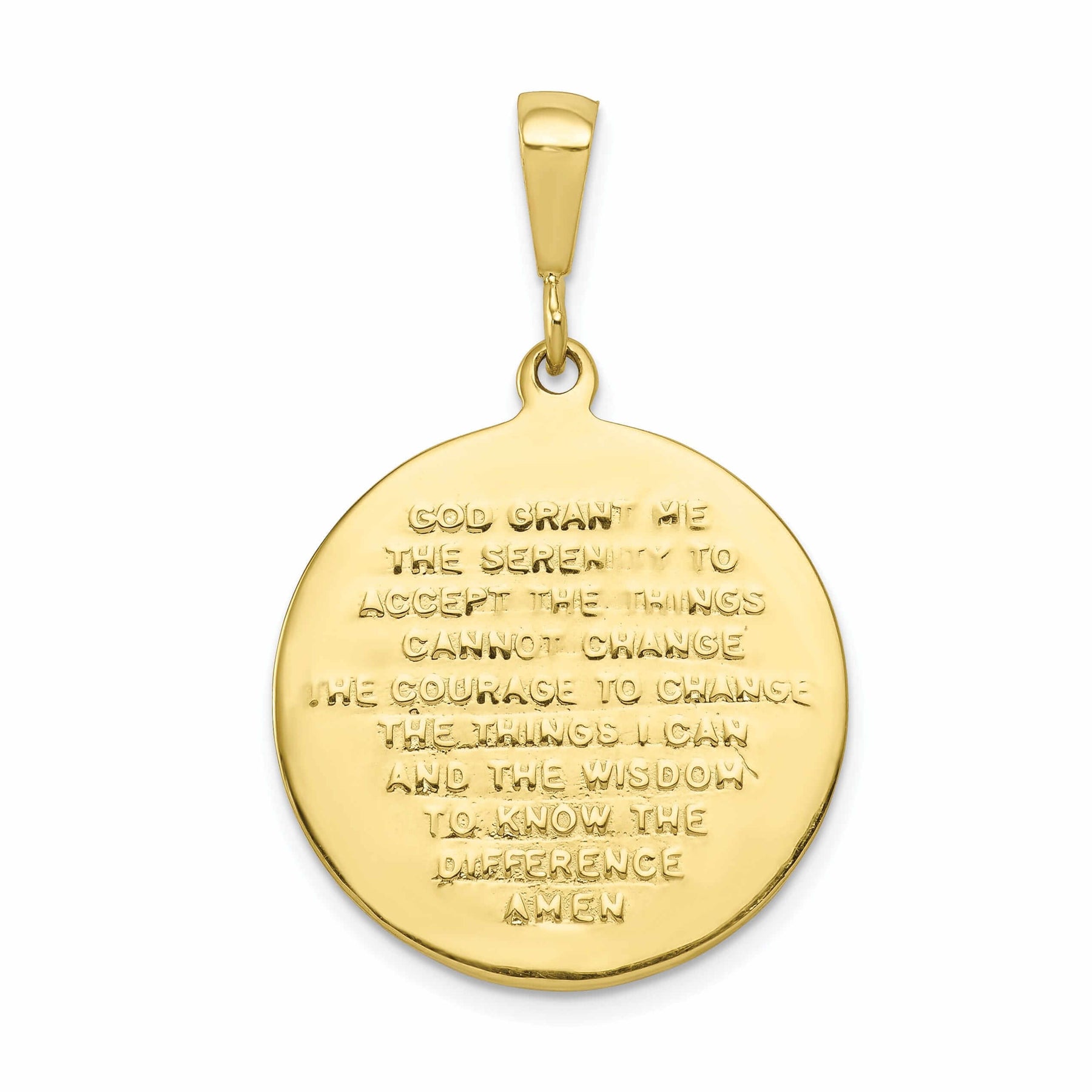 Elevate your spiritual style with this exquisite 10k Yellow Gold Praying Hands Serenity Pendant. Crafted from solid 10k yellow gold, this pendant features a polished satin finish for a touch of elegance. The design showcases a pair of praying hands on one side and the Serenity Prayer charm on the other, giving you the option to wear it in two different ways.