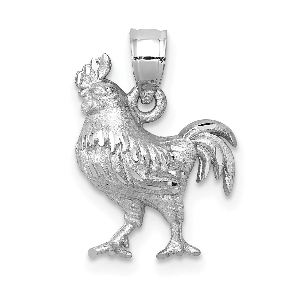 14K White Gold Open Back Brushed Diamond Cut Finish Solid Rooster Charm Pendant