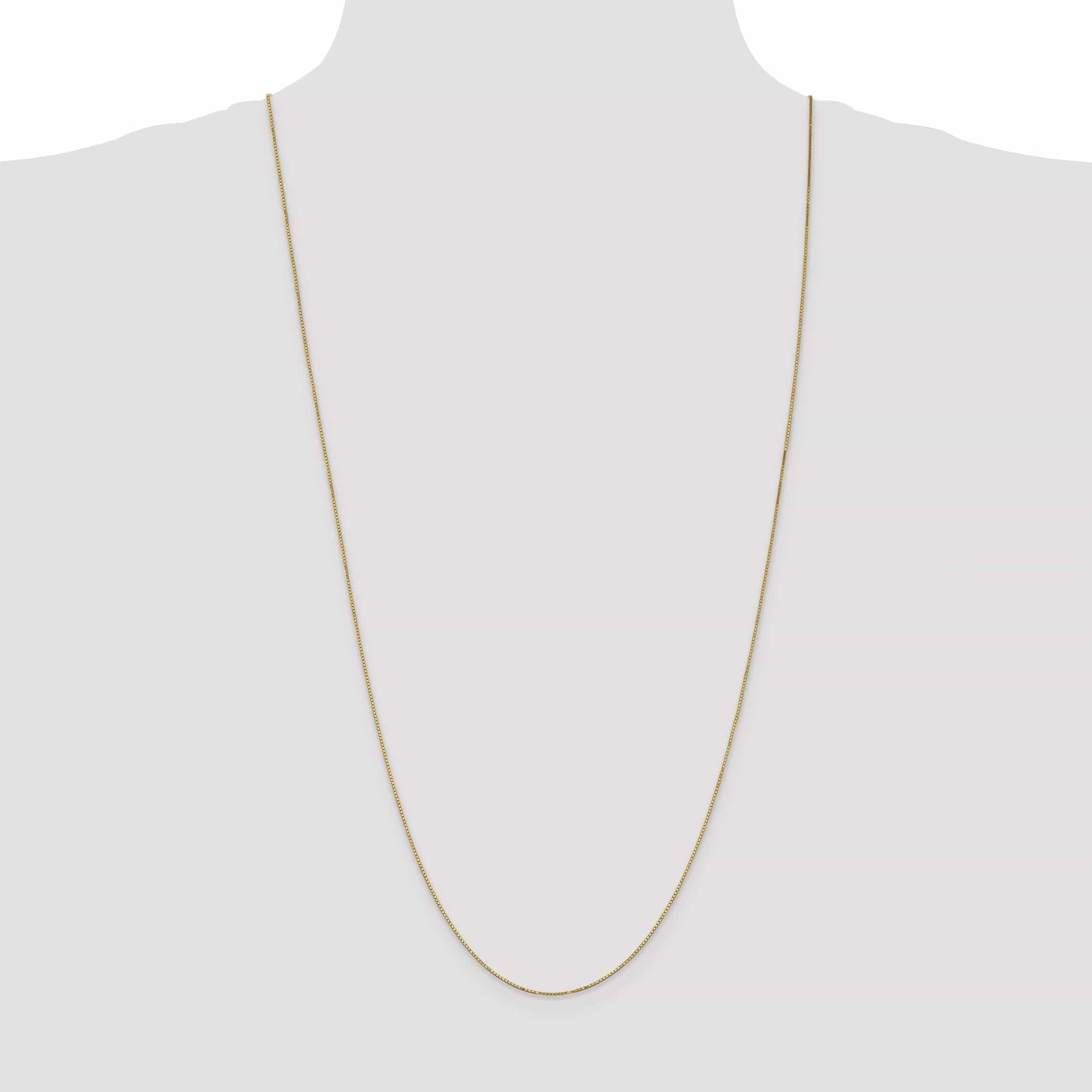 Invest in timeless elegance with our 14k Yellow Gold 0.90mm Polish Solid Box Chain and elevate your style to the next level. Suitable for both men and women, this chain makes a thoughtful gift for yourself or a loved one. Add this versatile piece to your jewelry collection today and enjoy its beauty for years to come.