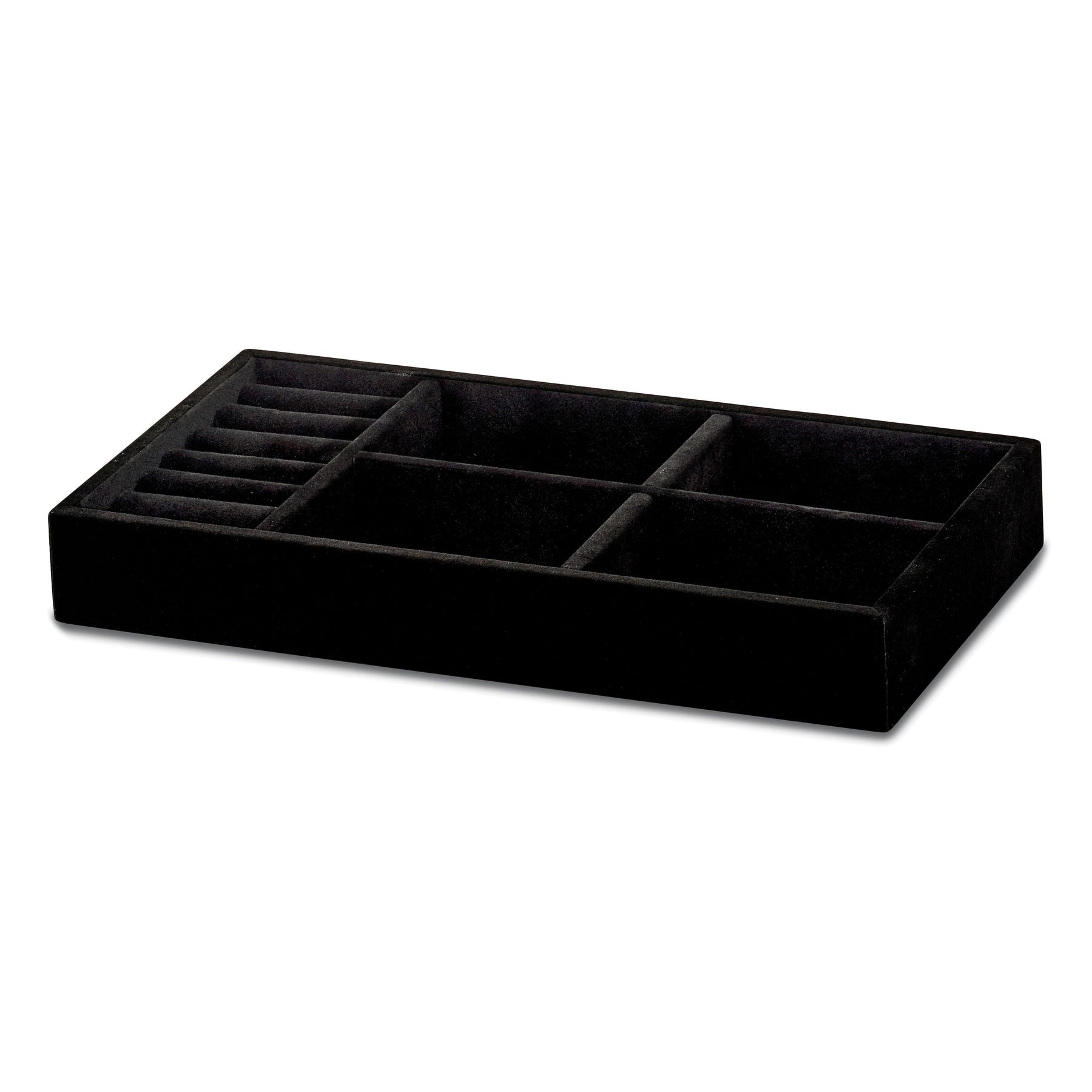 Introducing our luxurious Multipurpose 4 slot Tray with Ring Roll, a must-have accessory for organizing your jewelry collection in style. Crafted with high-quality black faux suede material, this elegant tray is both sleek and durable, perfect for displaying your favorite rings and jewelry pieces.