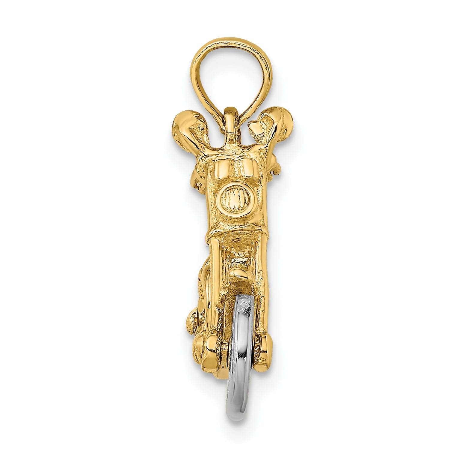 14k Two Tone Gold Polished Finish 3-Dimensional Moveable Chopper Bike Motorcycle Charm Pendant
