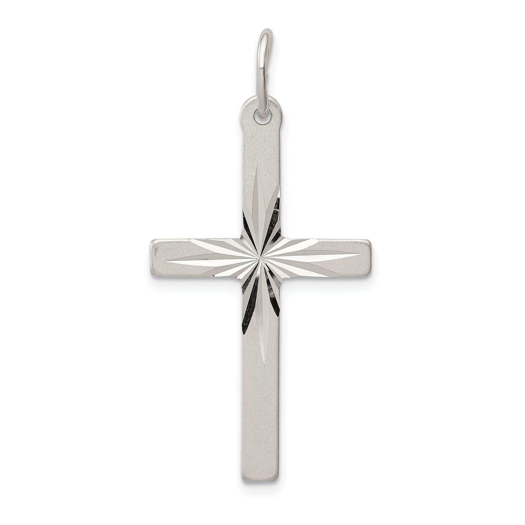 Elevate your everyday style with this stunning Silver Polished Satin D.C Latin Cross Pendant. Crafted from solid sterling silver, this pendant features a polished satin finish with intricate diamond cut detailing, adding a touch of sophistication to any outfit.