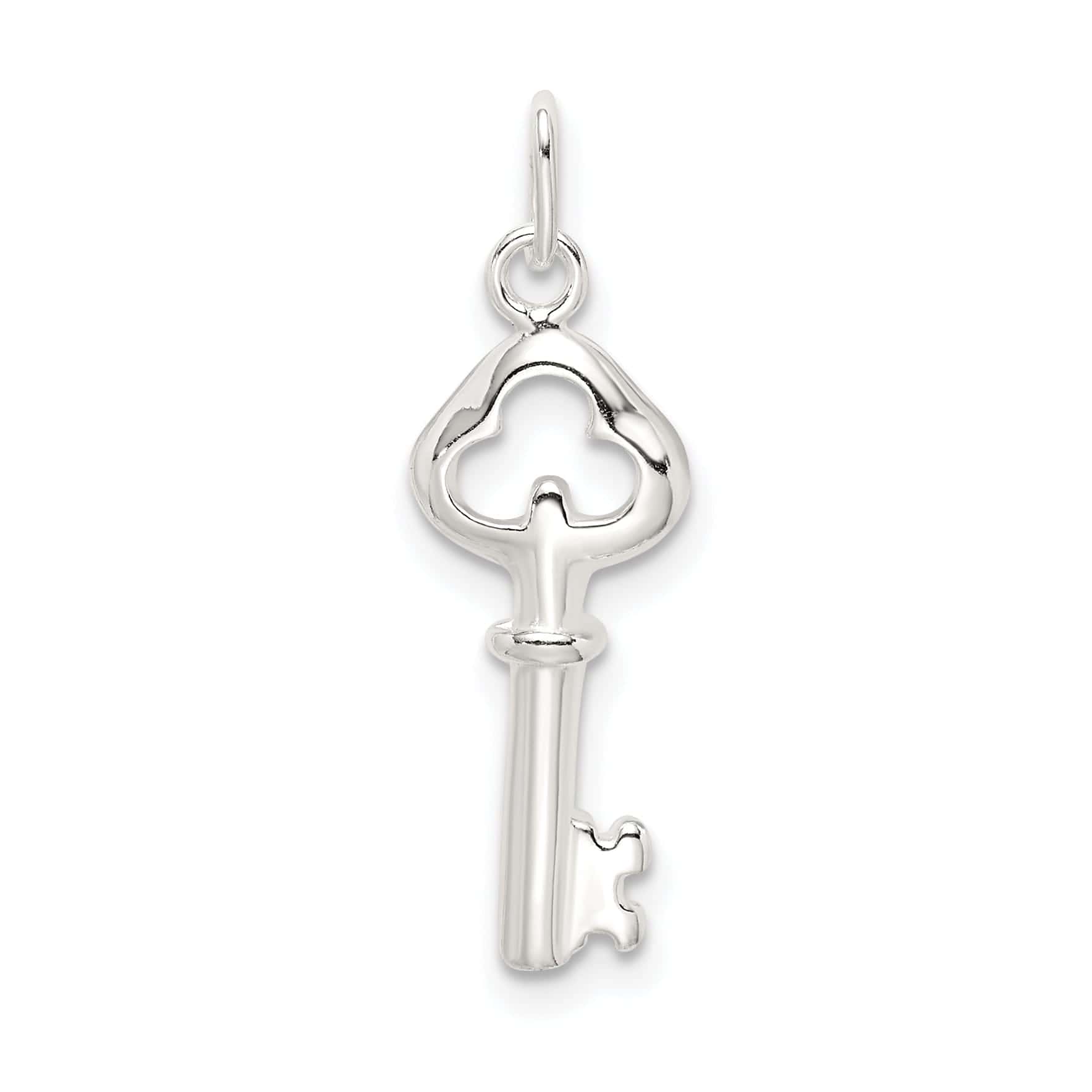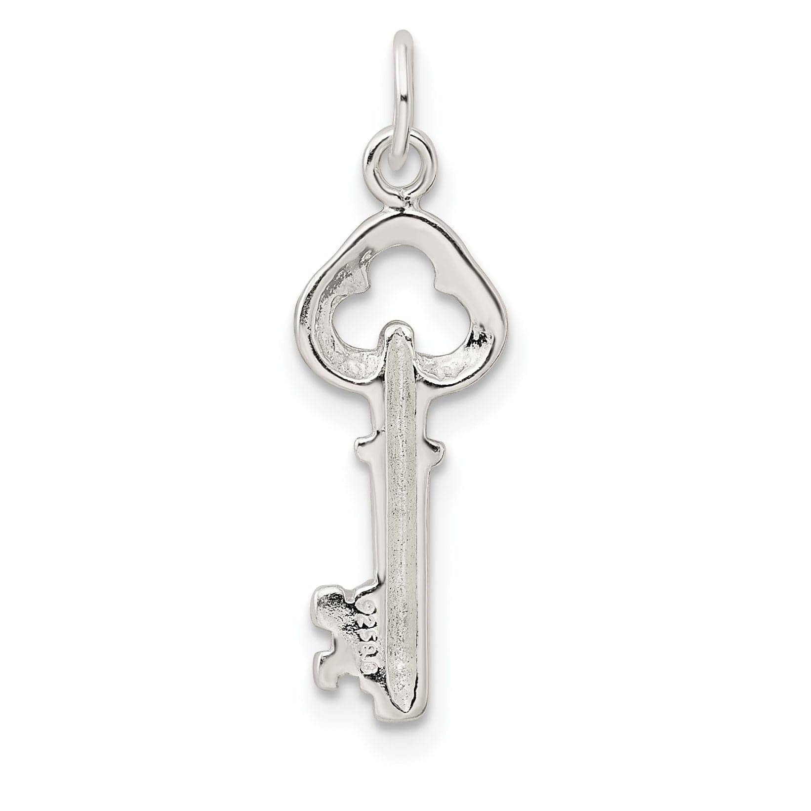 This versatile pendant can be worn on its own for a minimalist look or layered with other necklaces for a more statement-making style. Whether you're dressing up for a special occasion or adding a touch of elegance to your everyday outfits, this Sterling Silver Open Back Key Charm Pendant is the perfect accessory.