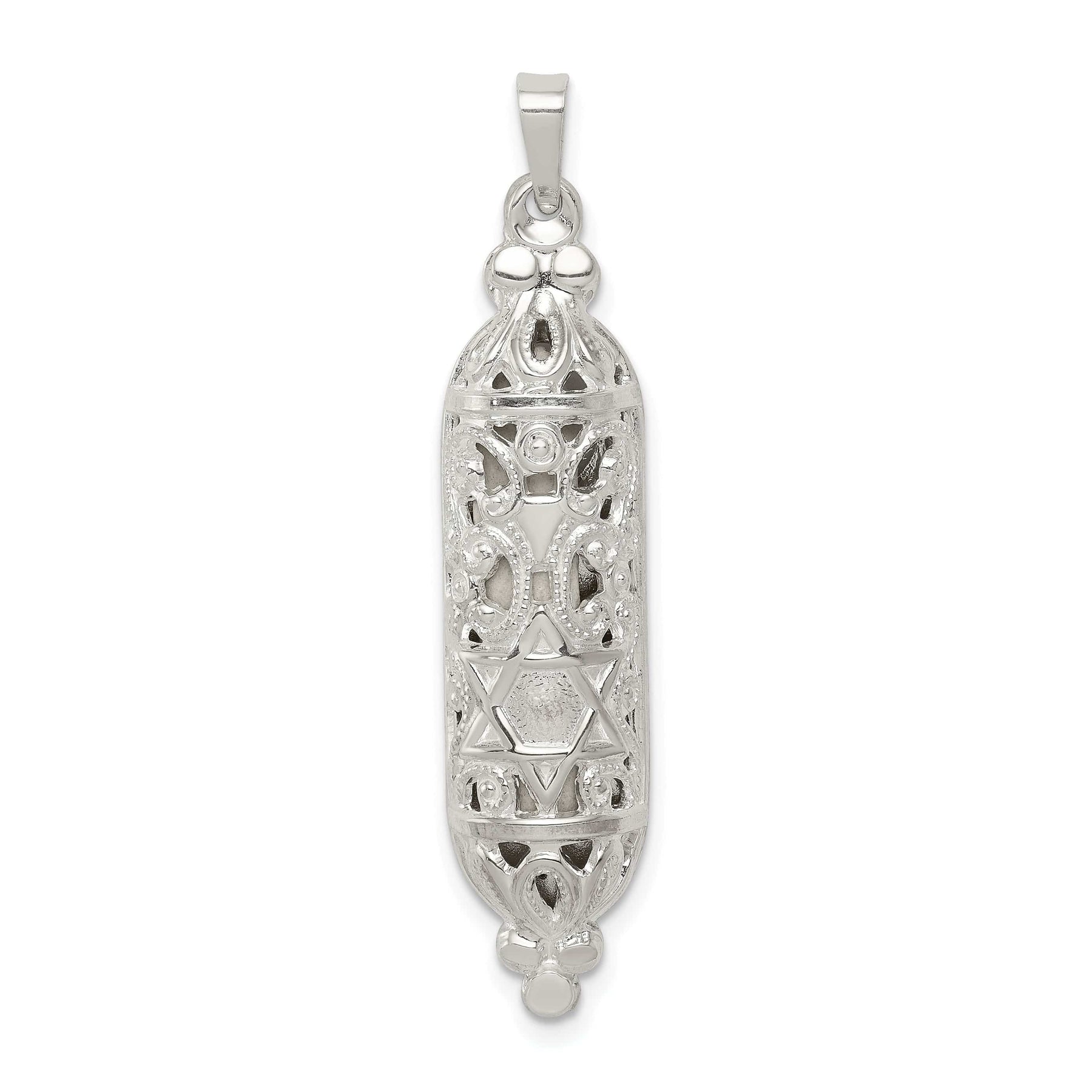 This Sterling Silver Fancy Mezuzah Pendant is a timeless and elegant piece that would make a thoughtful gift for a loved one or a meaningful addition to your own jewelry collection. With its exceptional craftsmanship and intricate design, this pendant is sure to become a cherished and meaningful piece that you will treasure for years to come. Add a touch of sophistication and spirituality to your style with this beautiful mezuzah pendant.