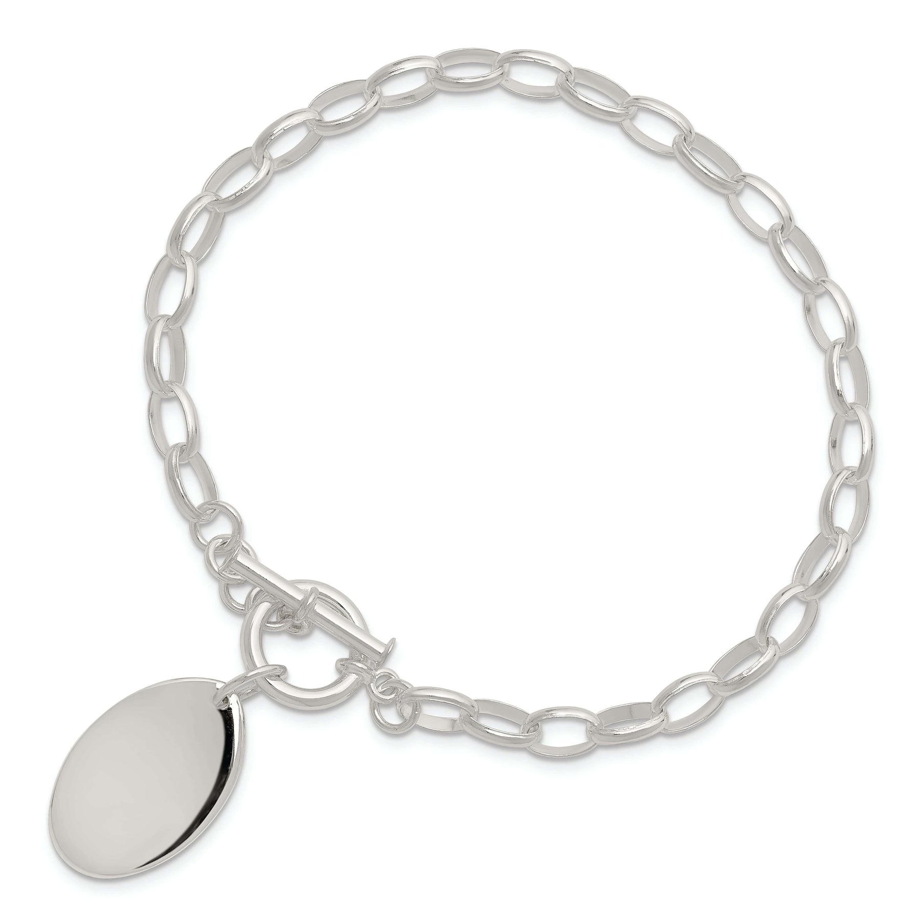 Whether you're dressing up for a night out or simply want to add a touch of luxury to your everyday ensemble, this Sterling Silver Fancy Oval Disc Bracelet is the perfect accessory. Treat yourself or spoil someone special with this timeless piece that will be cherished for years to come. Add it to your jewelry collection today and elevate your style to new levels of sophistication.