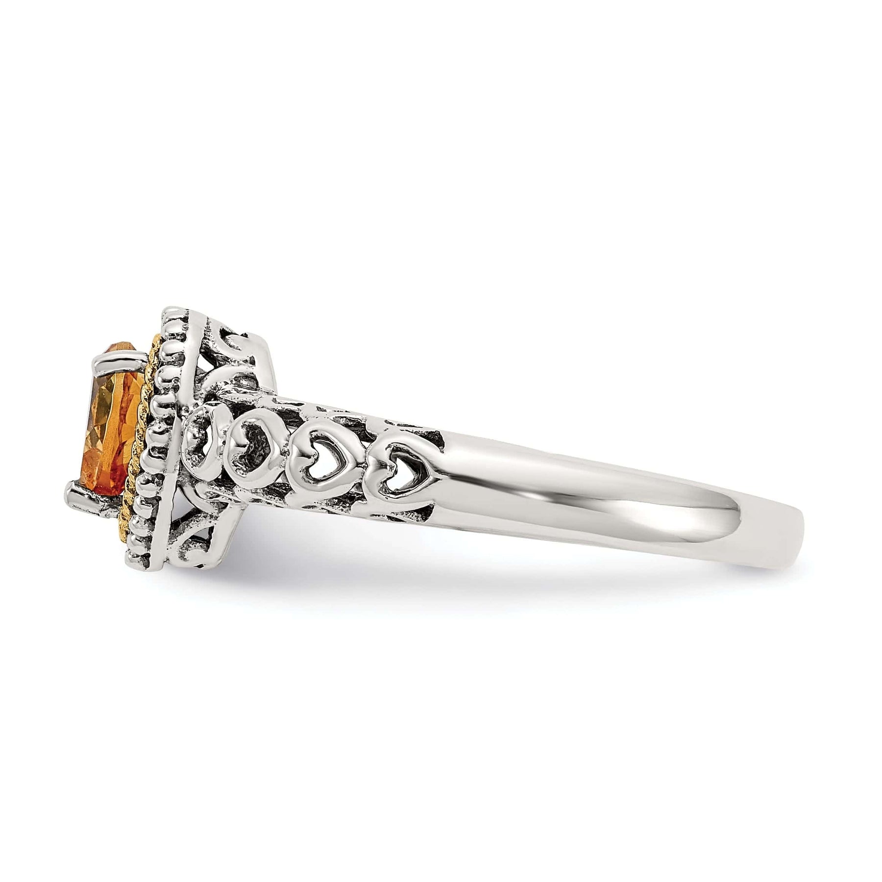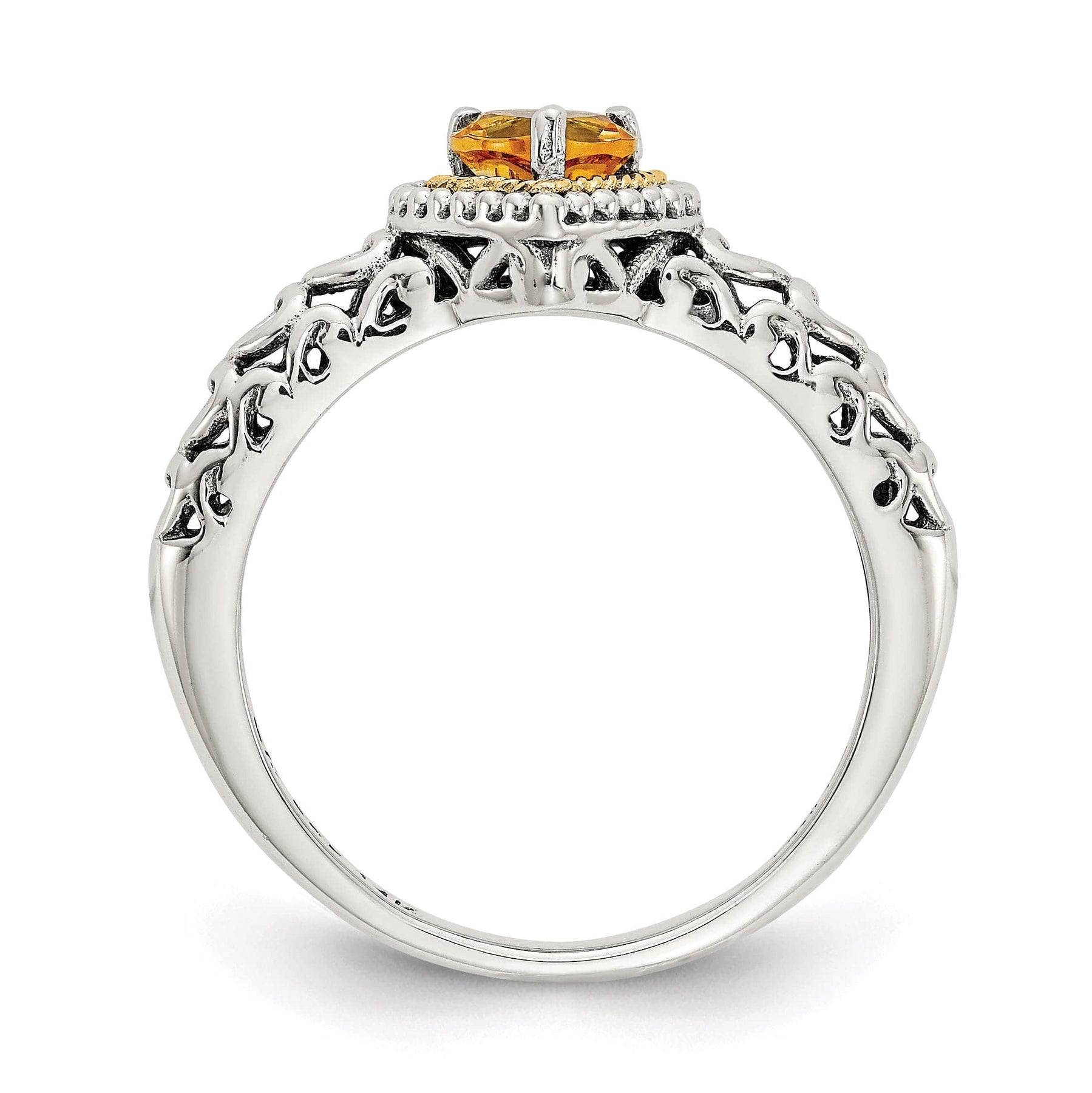Elevate your jewelry collection with this stunning Sterling Silver Gold Citrine Ring. Crafted from high-quality sterling silver with intricate 14k yellow gold detailing, this ring showcases a vibrant citrine gemstone that is sure to catch the eye.