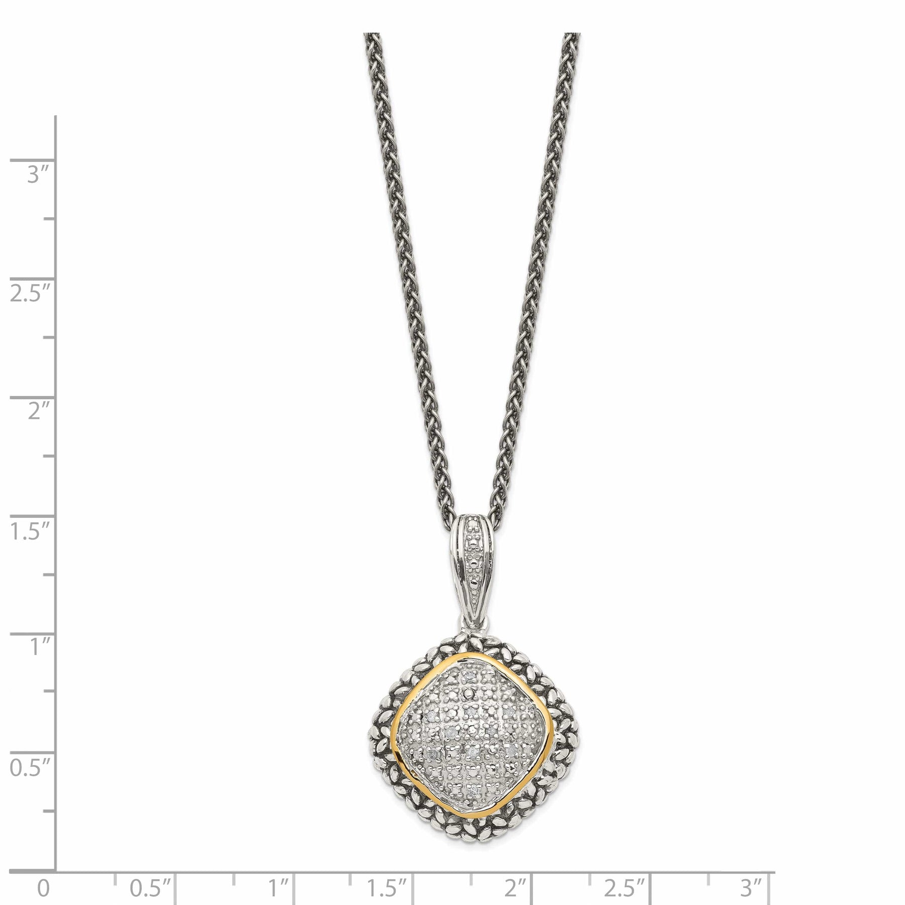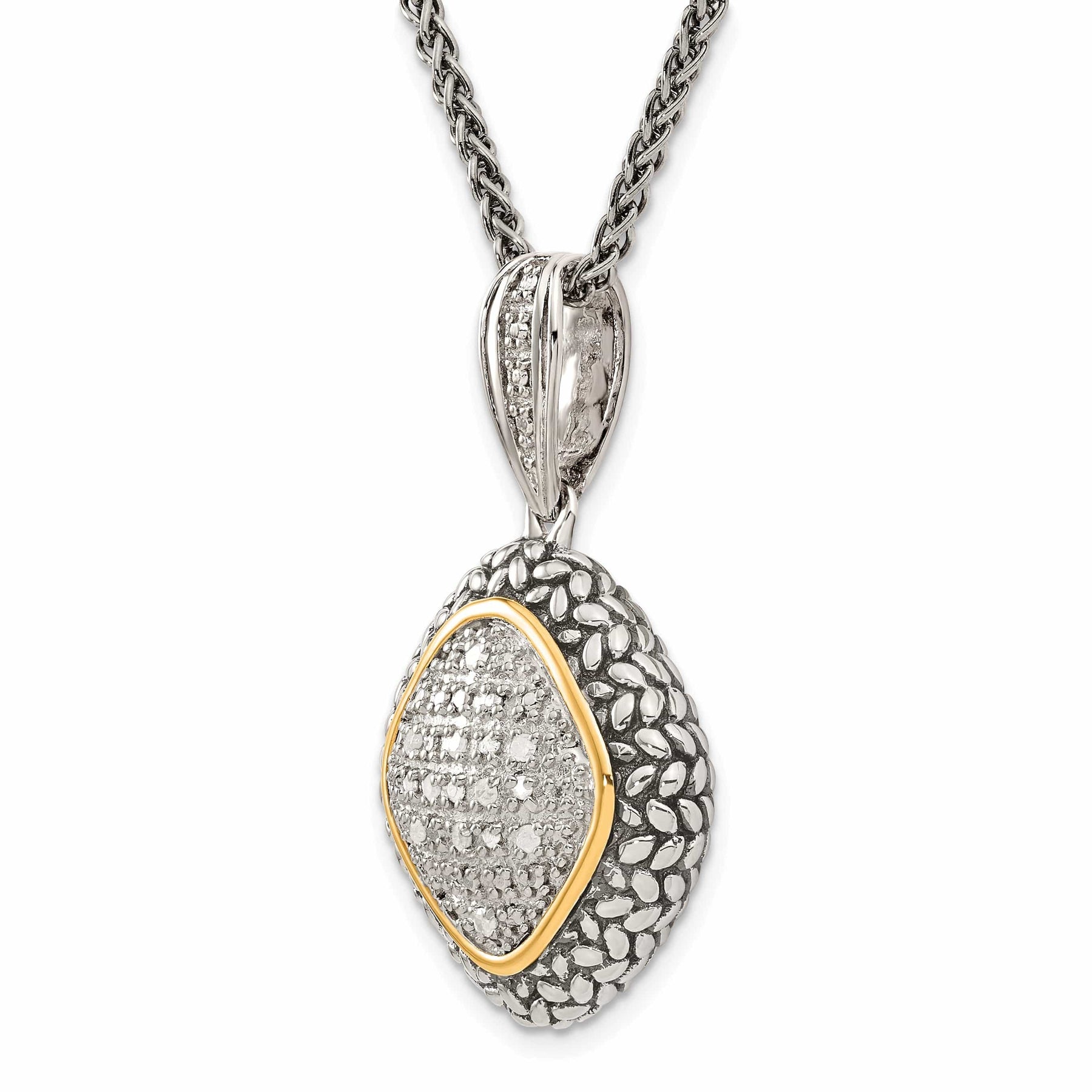 Elevate your look with this stunning Sterling Silver Gold Diamond 18 Necklace. Crafted with the finest materials, this necklace combines the elegance of sterling silver with the beauty of 14k yellow gold to create a truly luxurious piece. The focal point of this necklace is a dazzling 1/10 carat diamond that adds a touch of sparkle and sophistication.