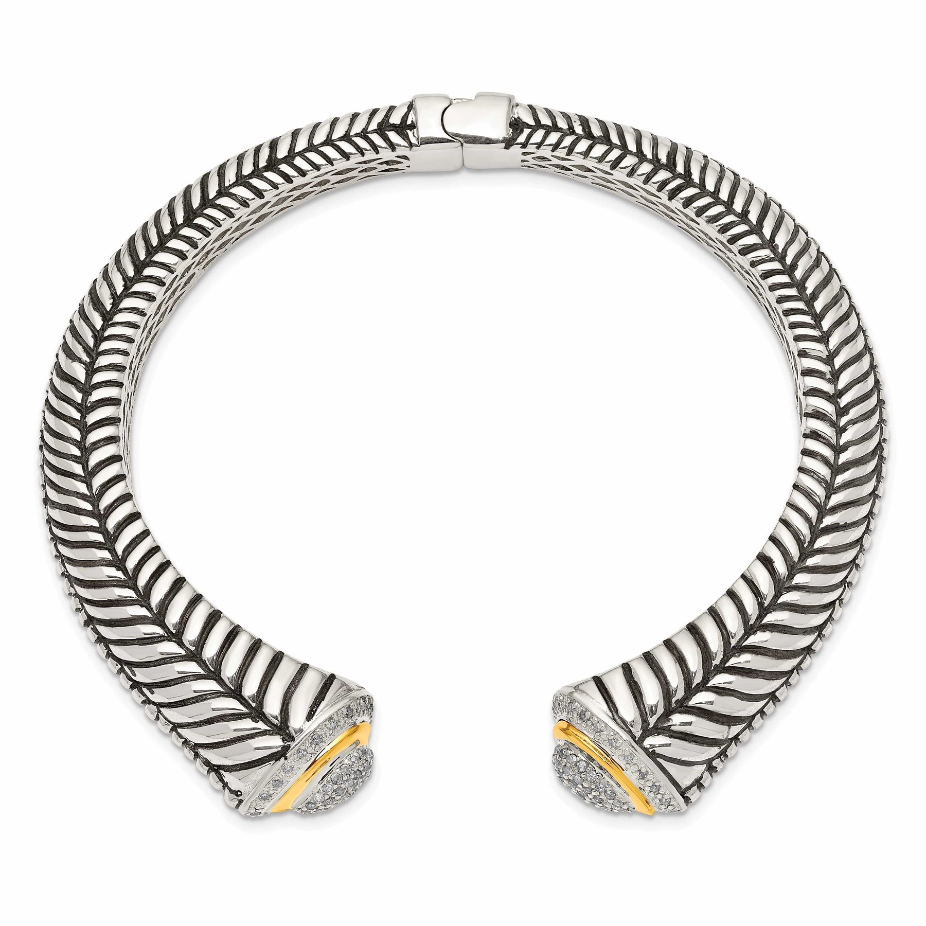 The combination of sterling silver and yellow gold creates a luxurious and sophisticated look that is perfect for any occasion. Whether you're dressing up for a special event or adding a touch of glamour to your everyday wardrobe, this cuff bracelet is sure to turn heads and make a statement.