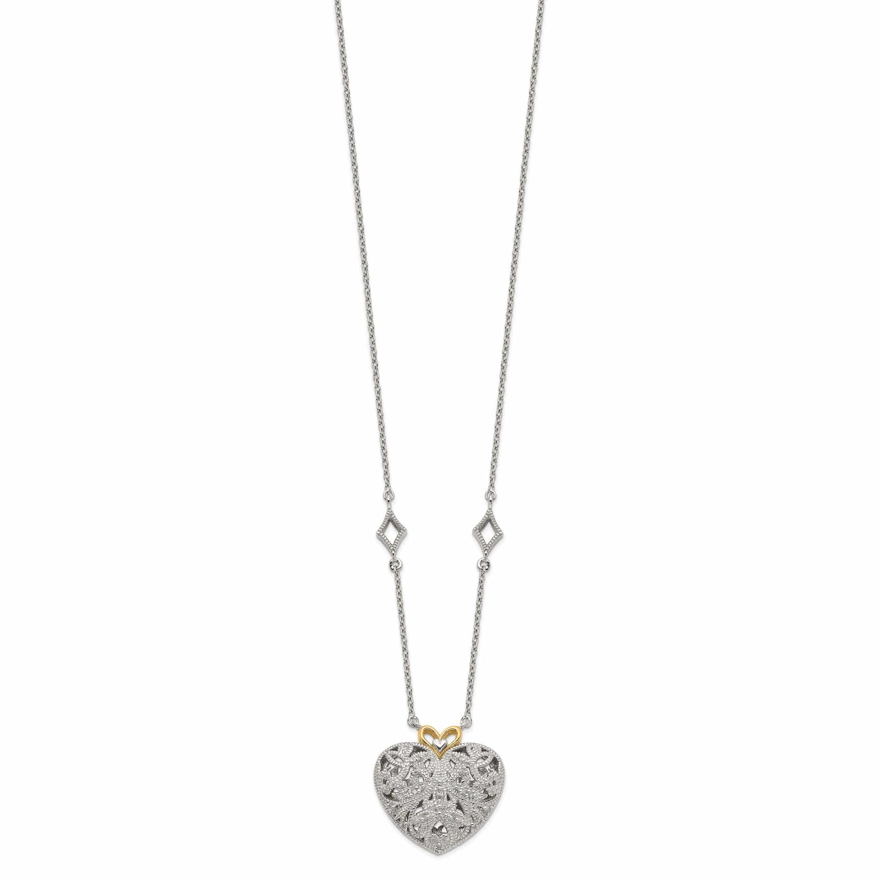 Sterling Silver Gold Diamond Heart Necklace
