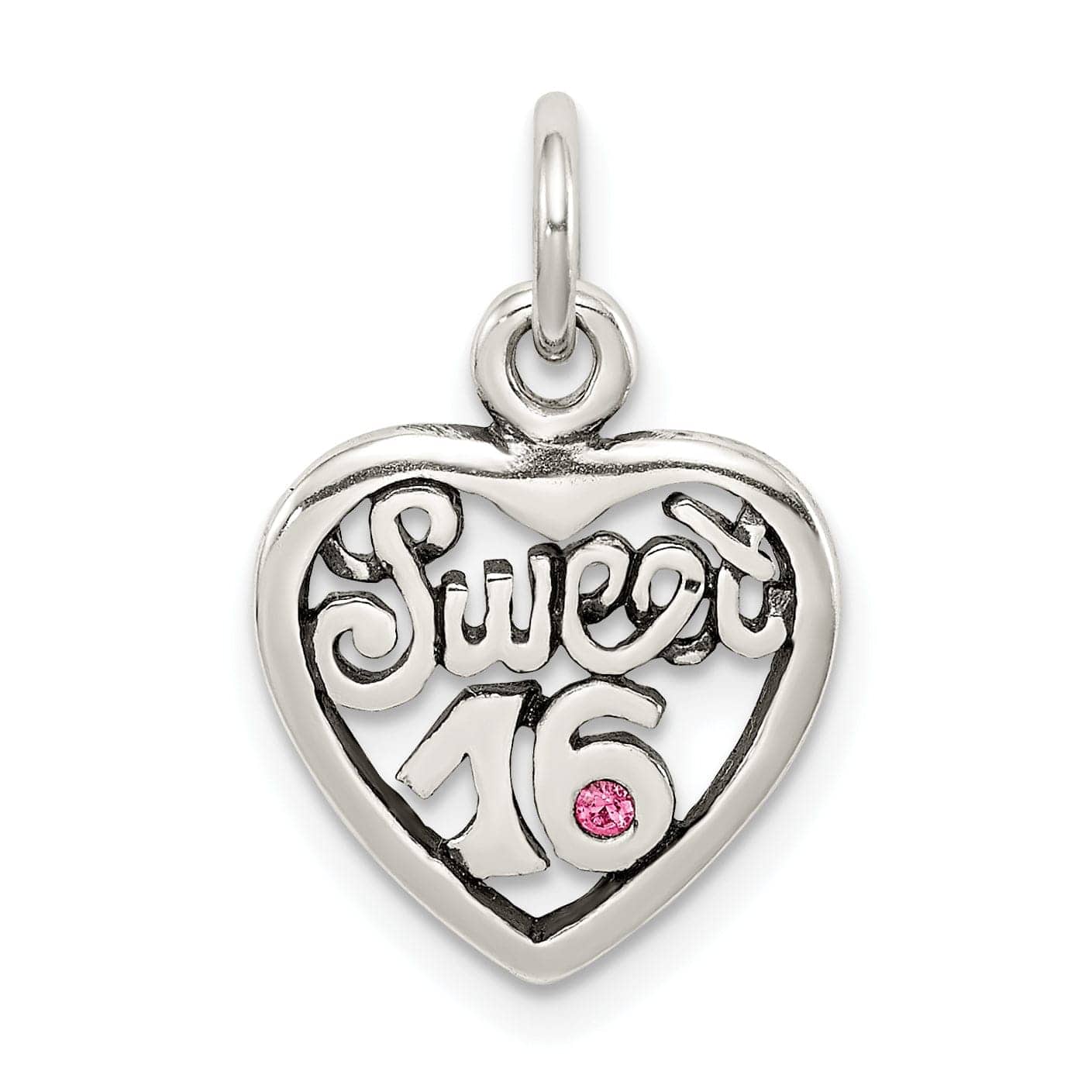 Sterling Silver Pink C.Z Sweet 16 Heart Charm