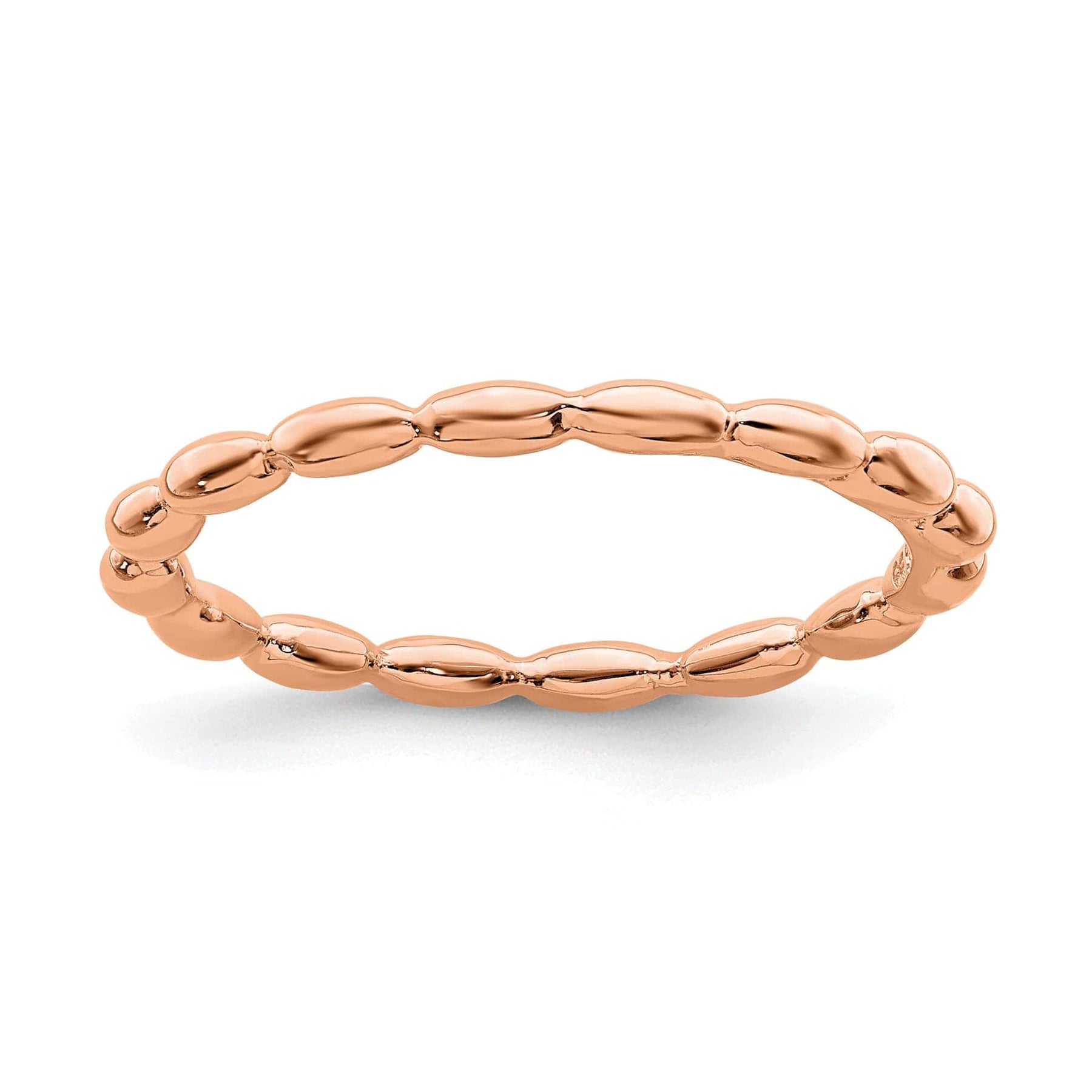 This Sterling Silver Pink-Plated Rice Bead Ring is versatile and can be worn alone for a sleek and polished look, or stacked with other rings for a more dramatic effect. It is a great addition to any jewelry collection and makes a thoughtful gift for yourself or a loved one. Elevate your style with this beautiful and chic ring today.