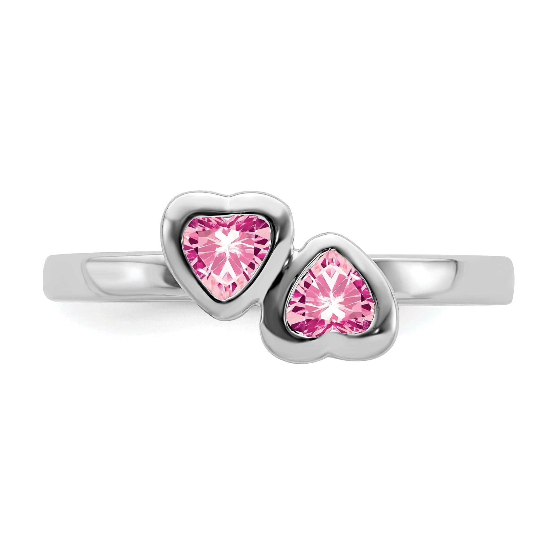 Sterling Silver Pink Tourmaline Double Heart Ring