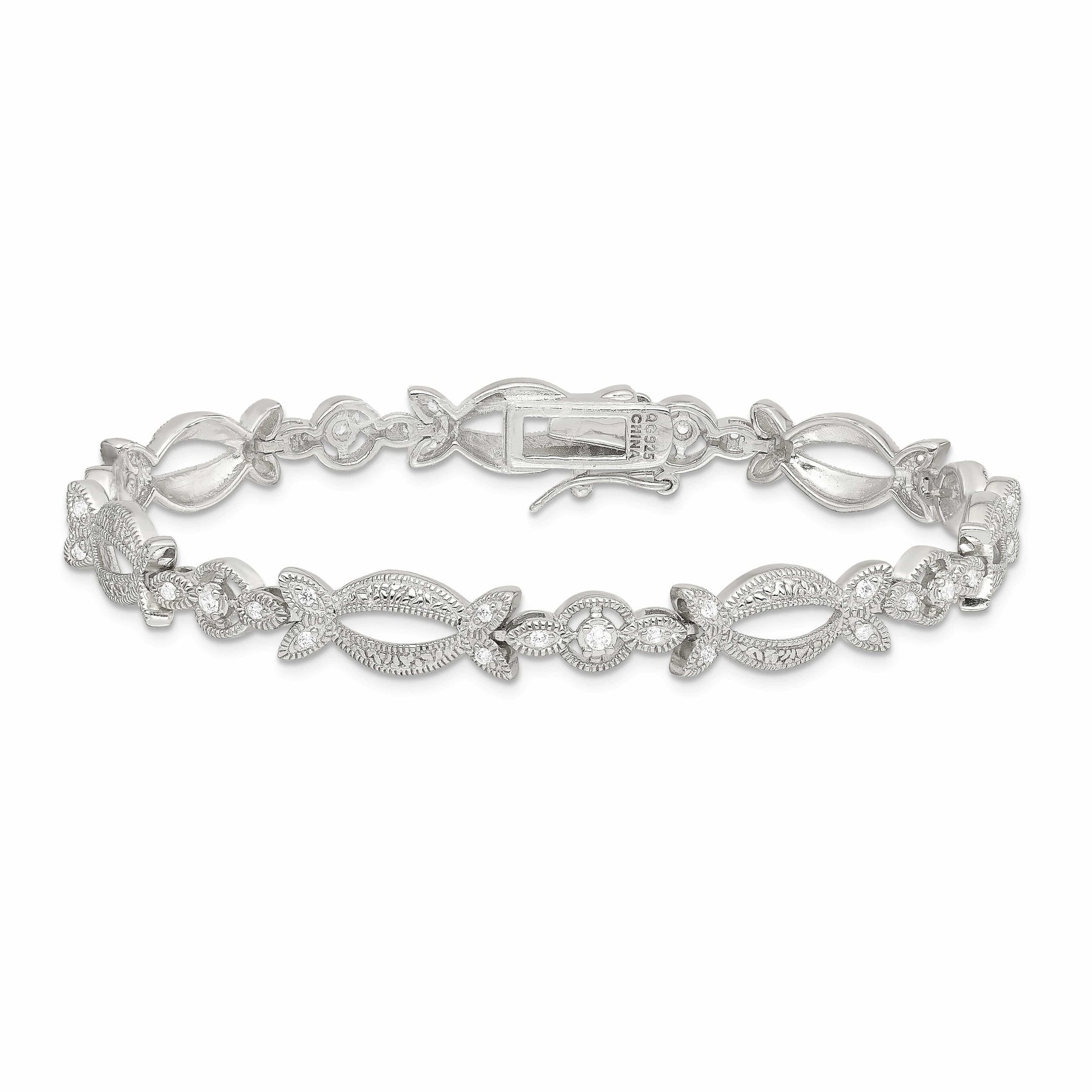 Sterling Silver Polish Cubic Zirconia Bracelet