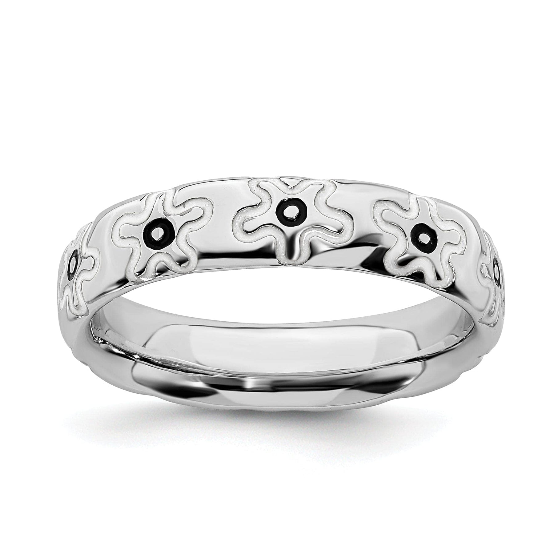 This Sterling Silver Polished Enameled Flower Ring is a timeless and versatile piece that can be worn for any occasion. Treat yourself or surprise a loved one with this beautiful ring that is sure to be treasured for years to come. Order yours today and add a touch of elegance to your jewelry collection.