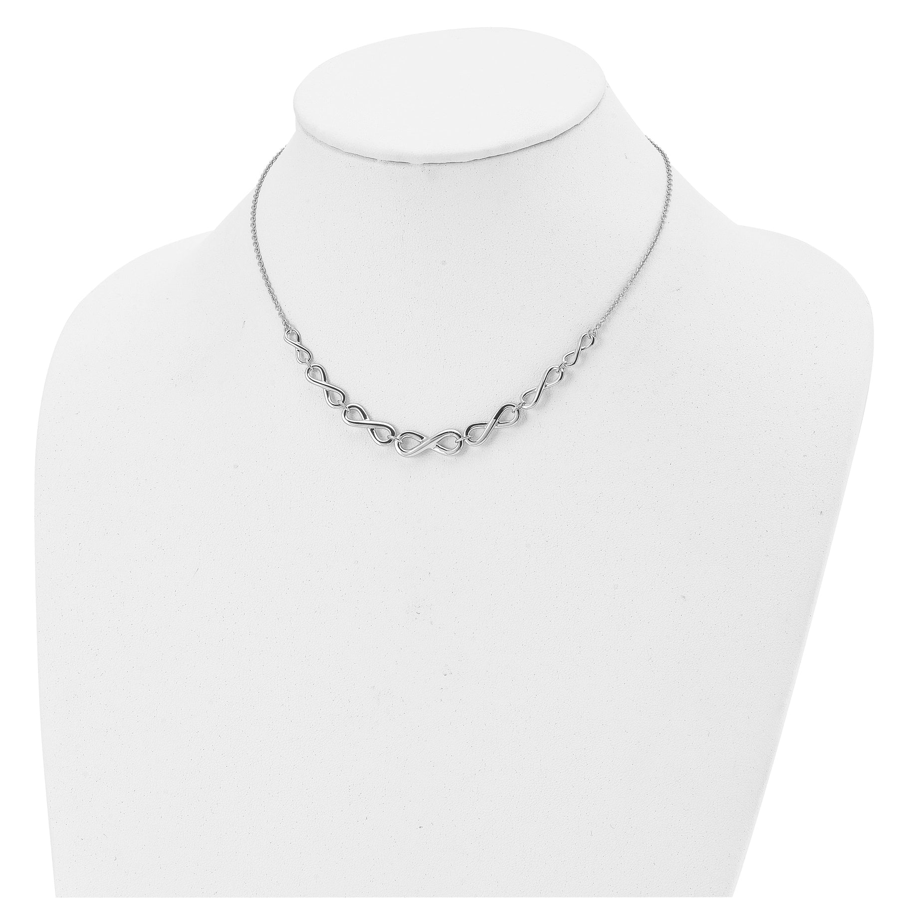 Elegance and sophistication come together in this exquisite Sterling Silver Polished Infinity Necklace from Leslie's. Crafted with the finest quality Sterling Silver and polished to perfection, this necklace features a timeless infinity design that symbolizes endless love and unity.