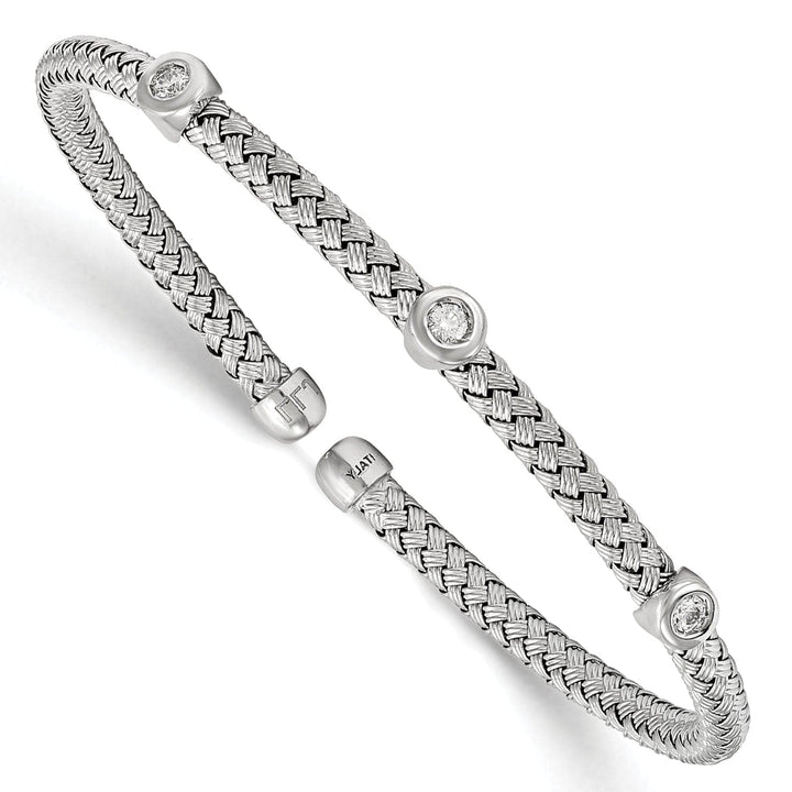 Sterling Silver Rhodium C.Z Woven Flexible Cuff