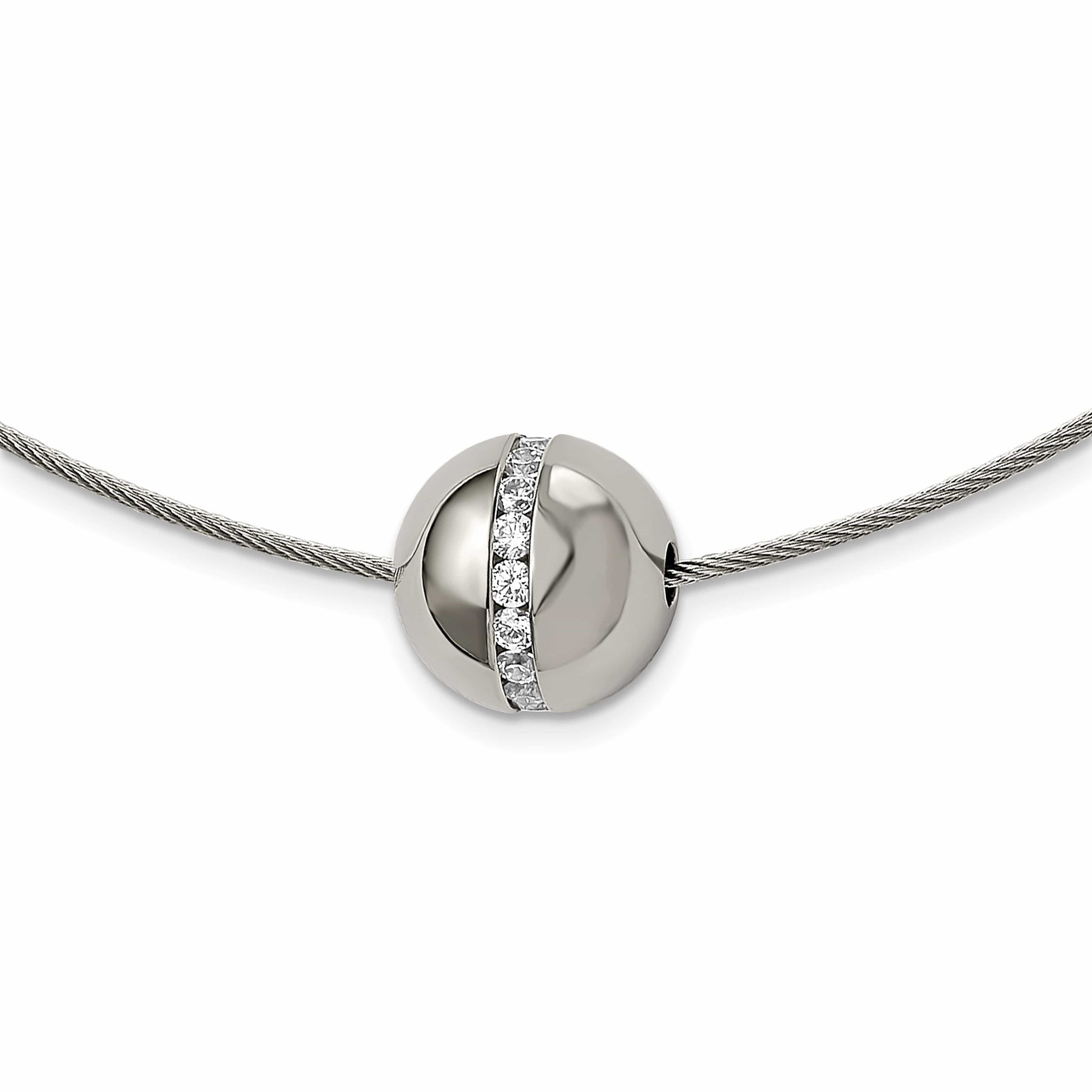 Elevate your look with this stunning Titanium Pendant Stainless Steel Wire Necklace. Made from strong and sleek Grey Titanium with a glossy finish, the pendant is adorned with a dazzling cubic zirconia for a touch of sparkle. The necklace itself is crafted from sturdy stainless steel wire, ensuring durability and longevity.