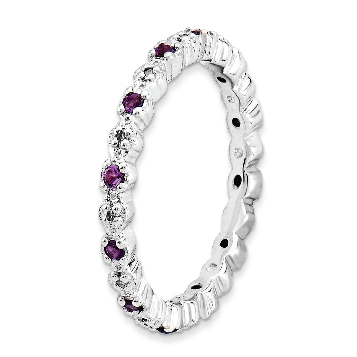 Whether you're wearing it on its own for a touch of glamour or stacking it with other rings for a bold statement, this Sterling Silver Stackable Expressions Amethyst Diamond Ring is sure to turn heads and become a favorite piece in your jewelry collection. Add a touch of sophistication and sparkle to your look with this exquisite ring. Shop now and treat yourself to a piece of luxury that will last a lifetime.