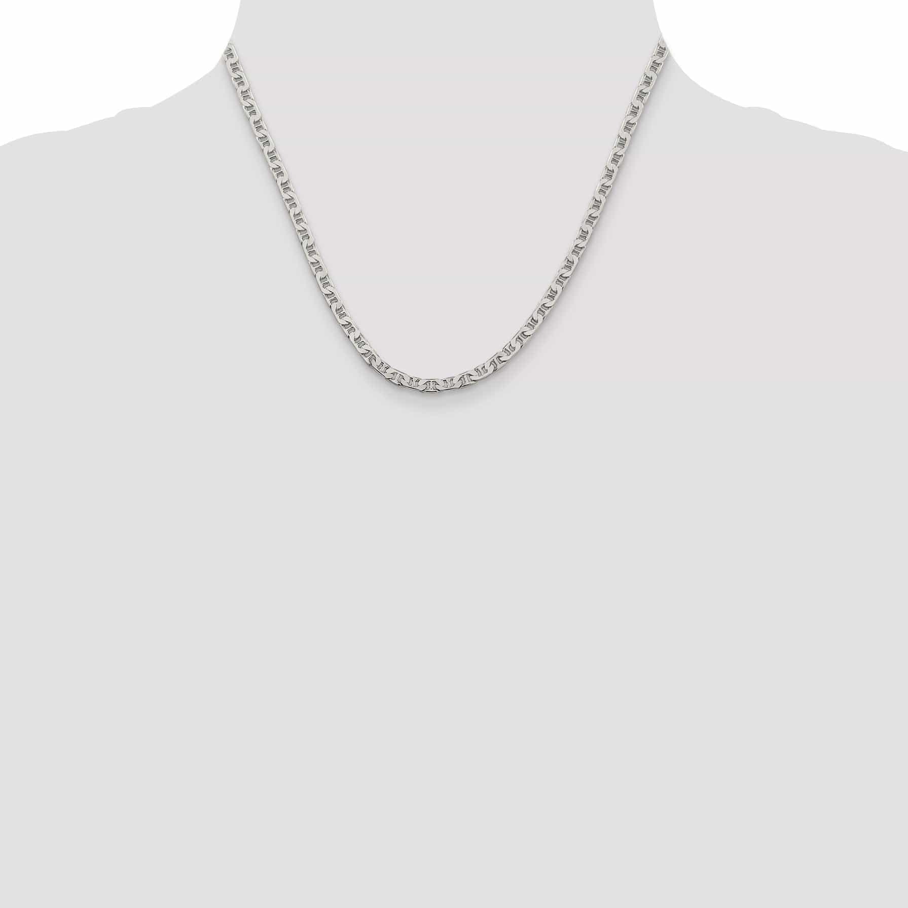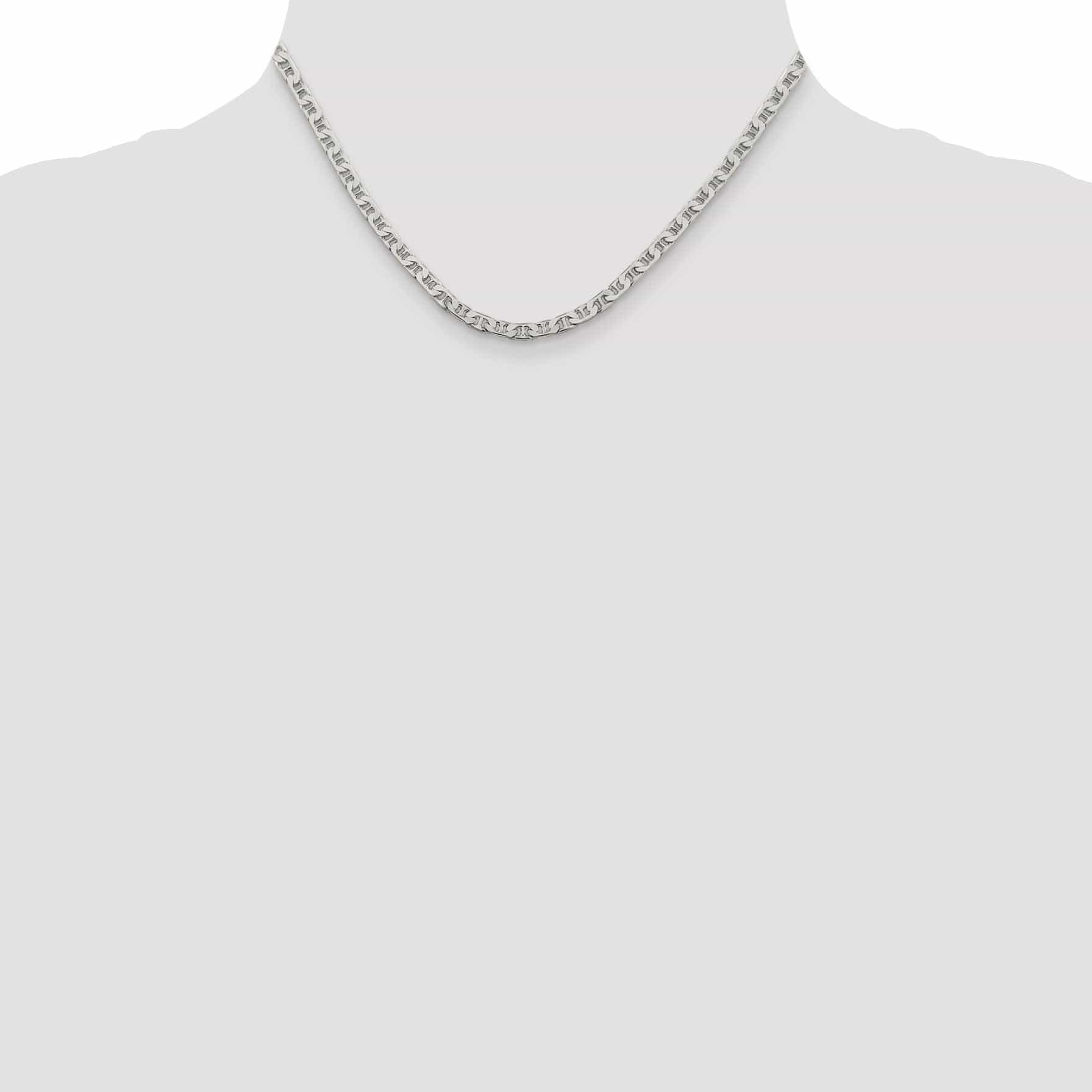 Finished with a durable lobster clasp, this chain is easy to put on and take off, providing both security and ease of wear. Whether you're dressing up for a special occasion or adding a touch of sophistication to your everyday look, this Sterling Silver Polished Finish 3.75-mm Flat Anchor Chain is a must-have piece that will never go out of style.