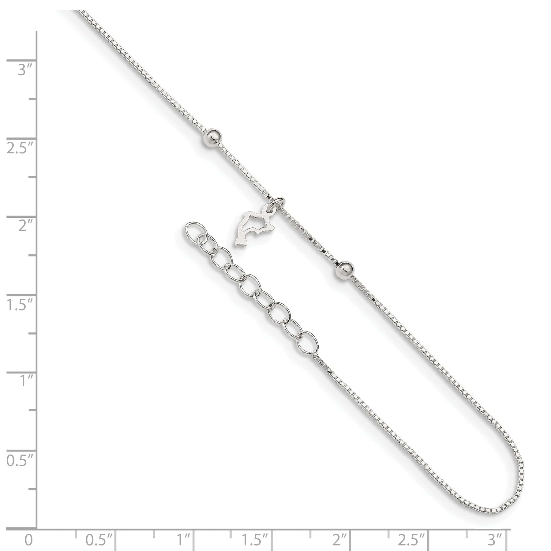 The Sterling Silver Box Chain with Dolphin Anklet is a charming and elegant piece of jewelry that will add a touch of whimsy to any outfit. This anklet features a sleek and shiny sterling silver box chain that is delicate yet durable, perfect for everyday wear.