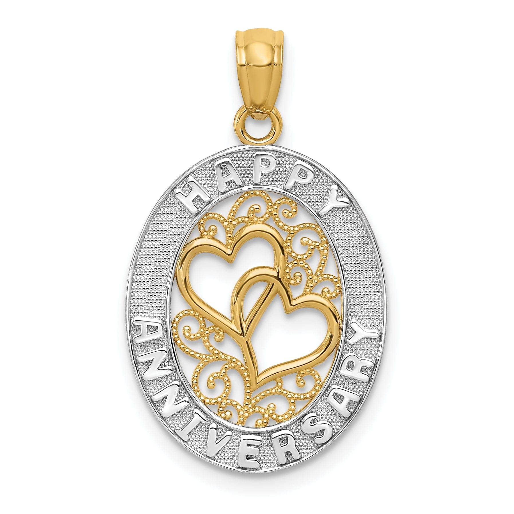 Give the gift of everlasting love with our 14k Two Tone Gold Happy Anniversary Hearts Charm Pendant. Order yours today and make this anniversary one to remember.
