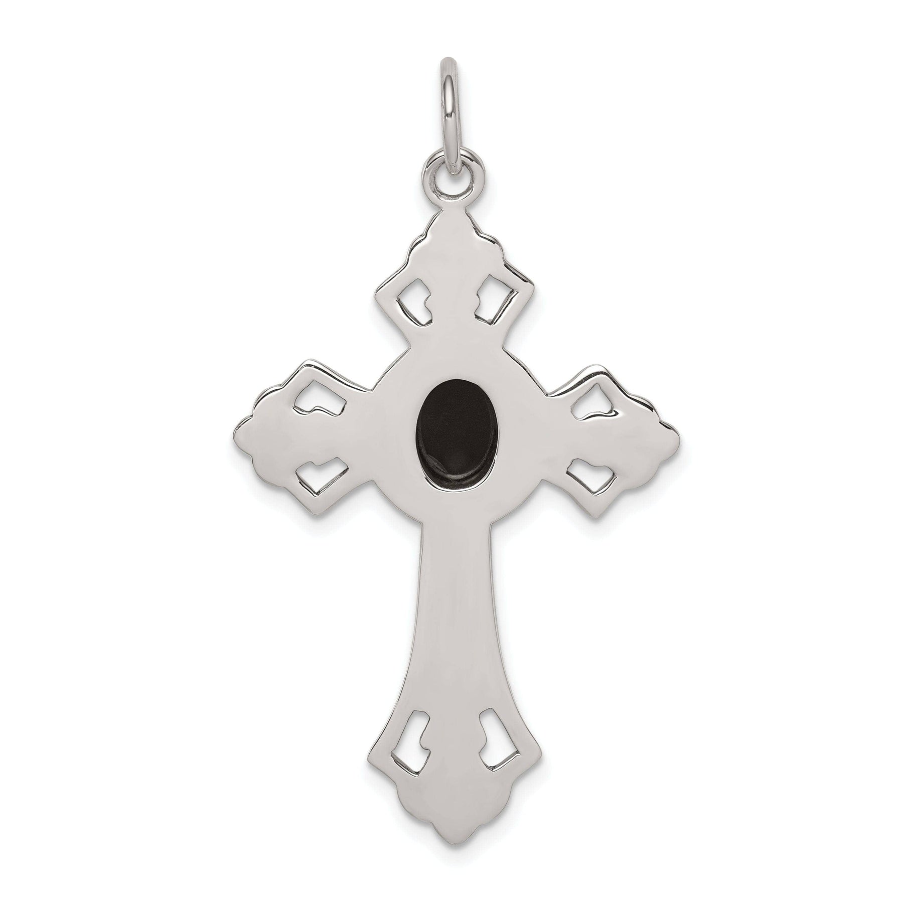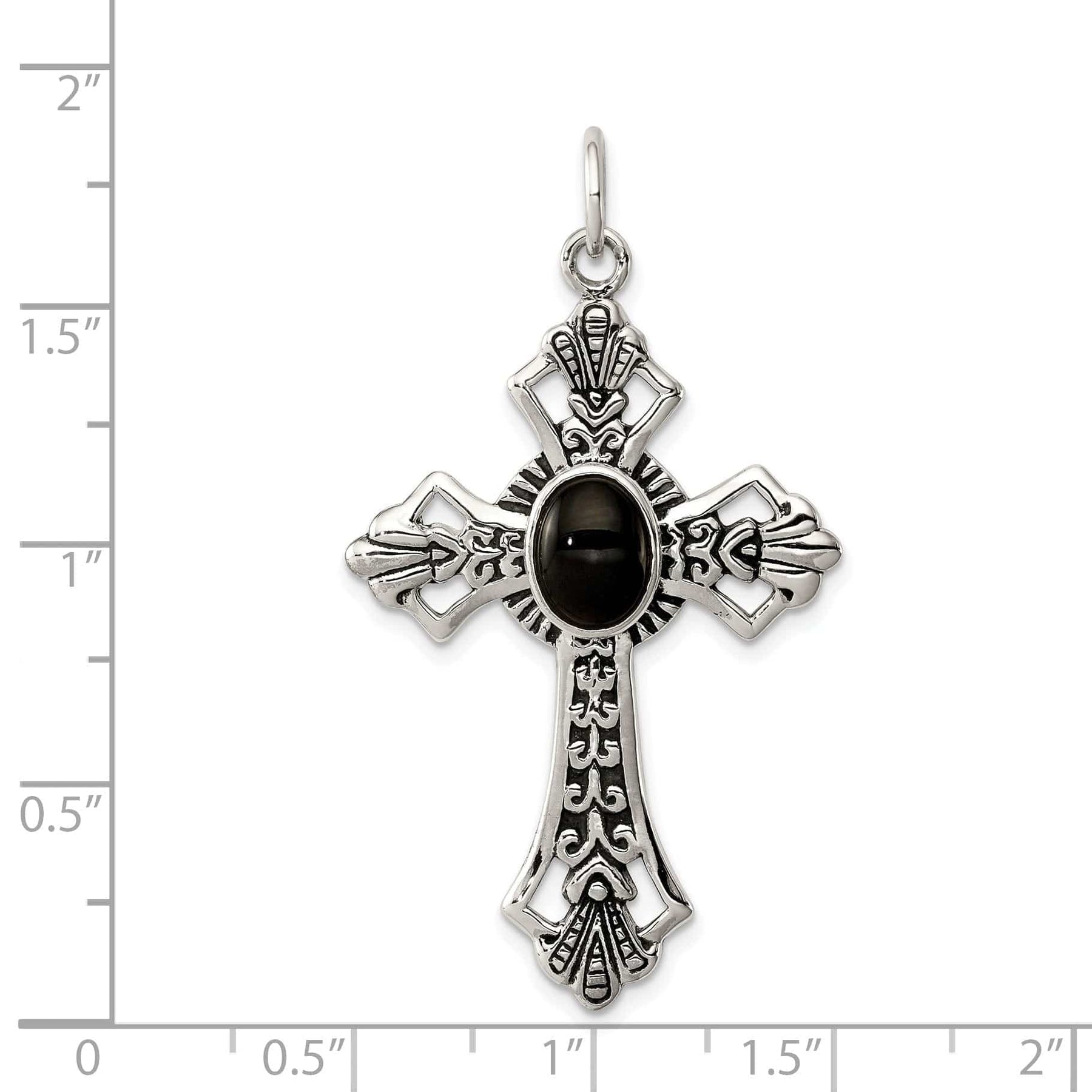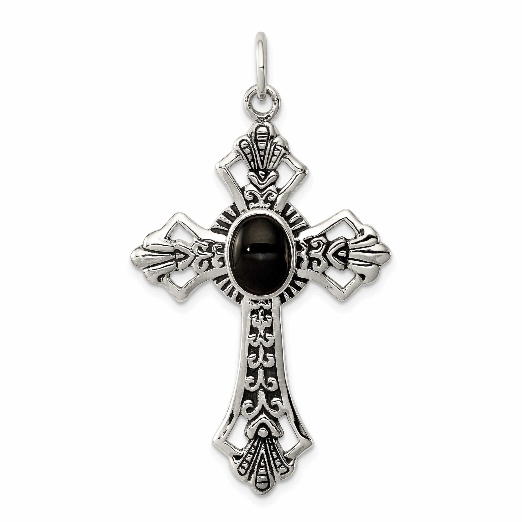 Silver Antique Polish Finish Onyx Cross Pendant
