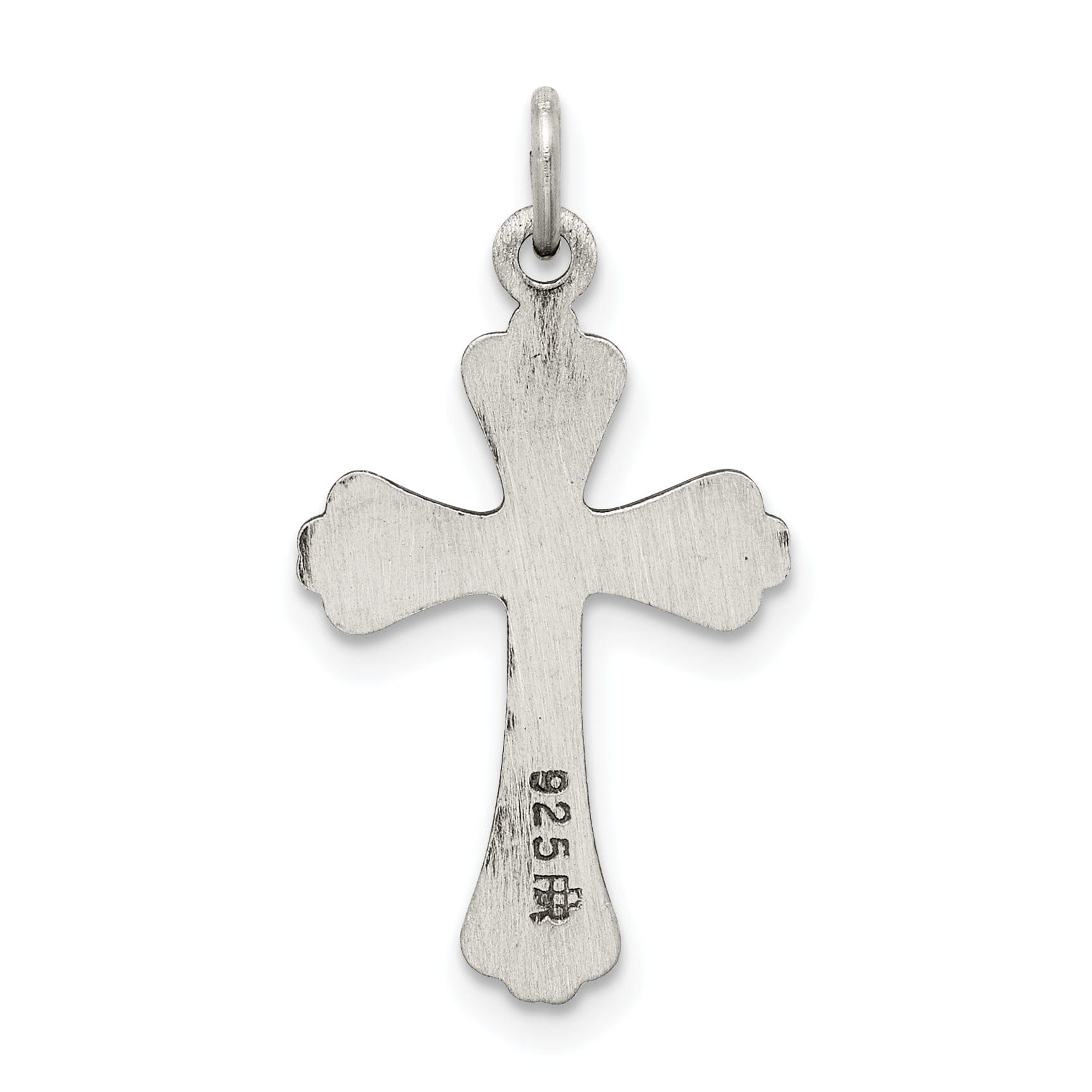 Elevate your everyday look with this exquisite Solid Sterling Silver Antiqued Cross Pendant. Crafted from high-quality sterling silver, this stunning pendant features a satin antiqued finish that adds a touch of vintage charm to any outfit. The flat back design makes it comfortable to wear all day long, while the average weight of 1.41 grams gives it a substantial feel without weighing you down.