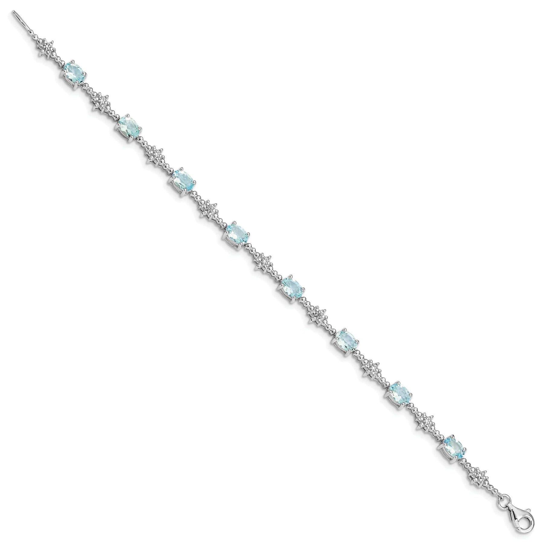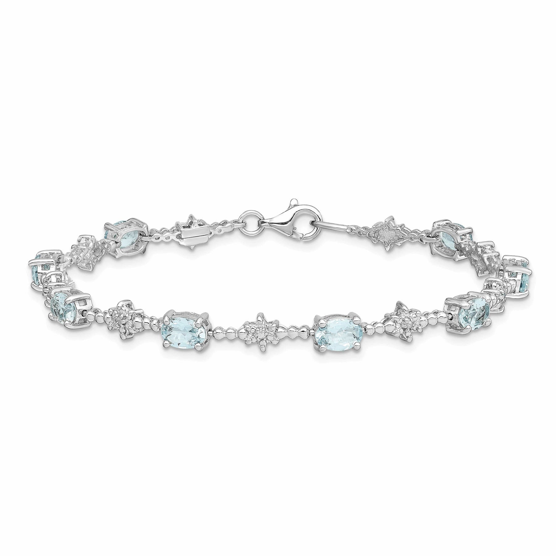 Elevate your jewelry collection with our stunning Silver Aquamarine Gemstone Diamond Bracelet. This exquisite piece features a sterling silver polished rhodium plated finish, creating a lustrous shine that catches the light with every movement.