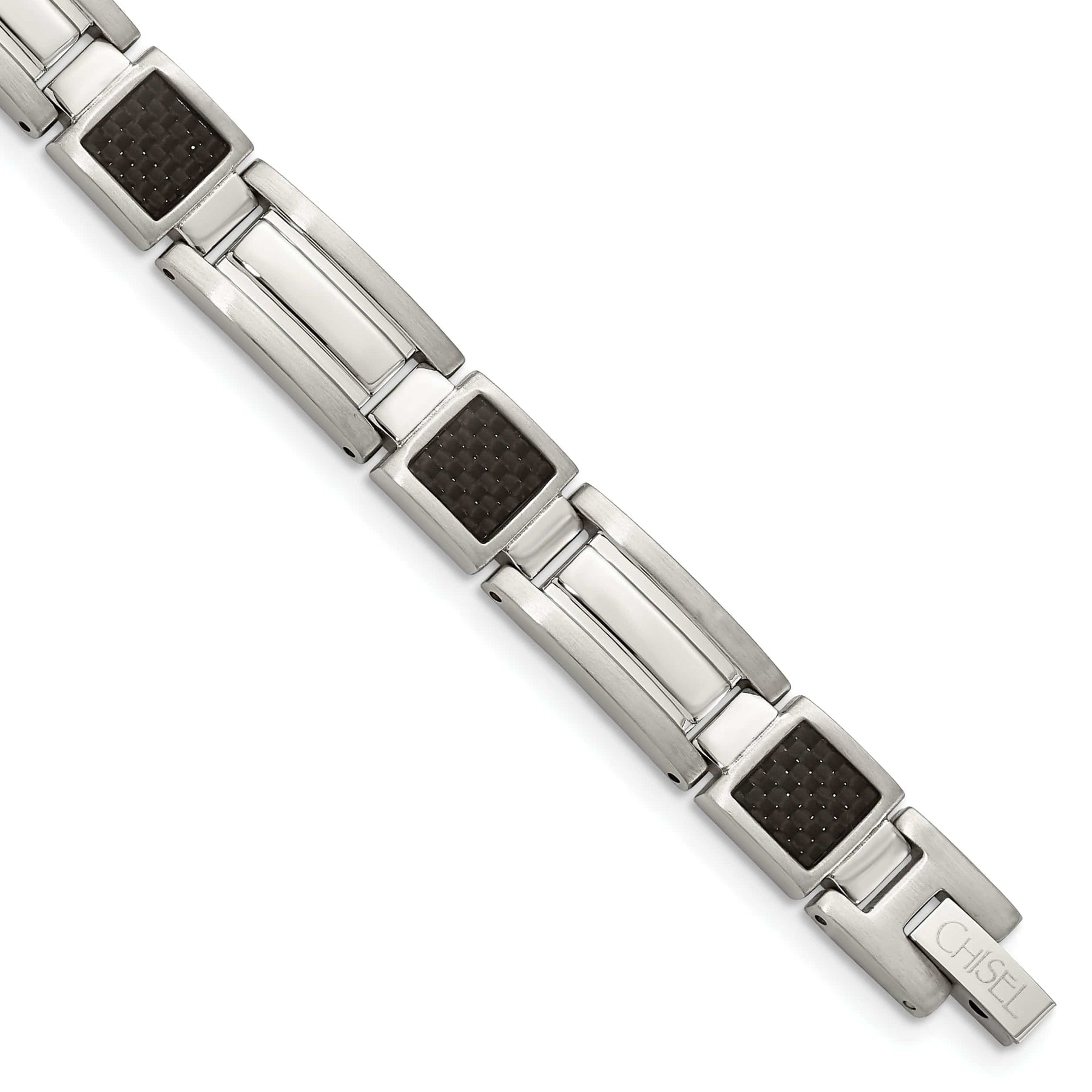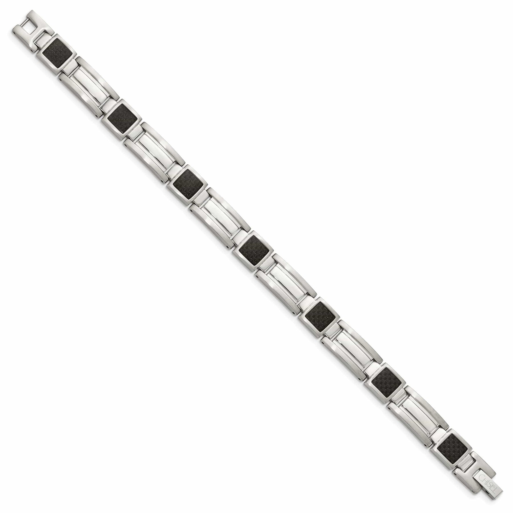 The combination of stainless steel and carbon fiber creates a striking contrast that is sure to turn heads wherever you go. The black carbon fiber detail adds a touch of edginess, making this bracelet perfect for both casual and formal occasions.