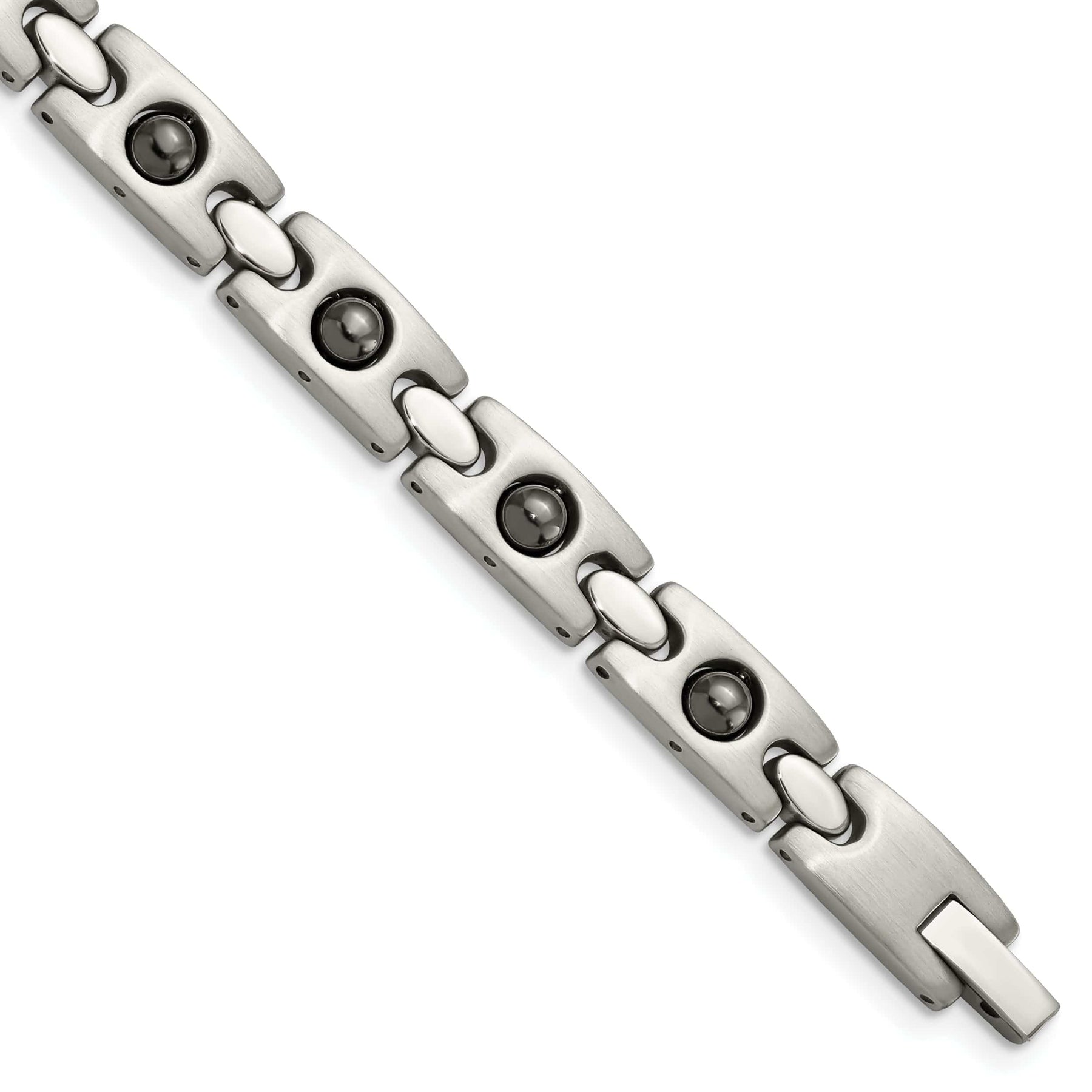 Whether you're looking for a statement piece to elevate your everyday outfit or a special gift for a loved one, our Stainless Steel Black Plated Magnetic Accents Bracelet is sure to impress. Add a touch of contemporary style to your look with this stunning bracelet.