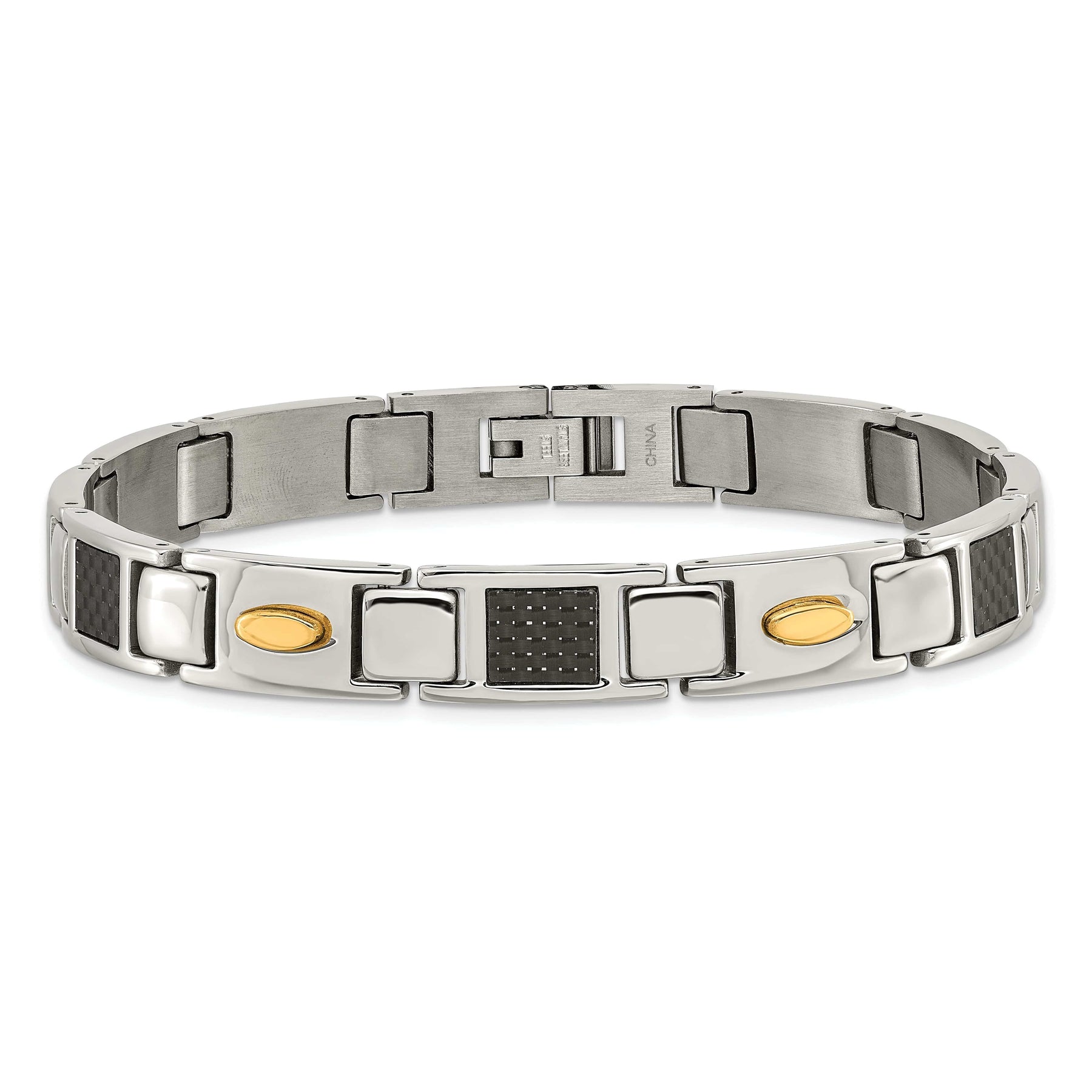 Treat yourself or a loved one to this exquisite Stainless Steel Black Carbon Fiber 24k Gold Plated Bracelet and elevate your style to new heights. Add this timeless piece to your jewelry collection and prepare to be the envy of all your friends.