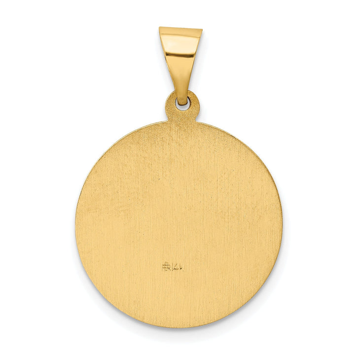 Add a touch of divine elegance to your jewelry collection with this exquisite 14k Yellow Gold Saint Edward Medal Pendant. Crafted from hollow 14k yellow gold with a polished satin finish, this pendant exudes a sense of sophistication and grace.