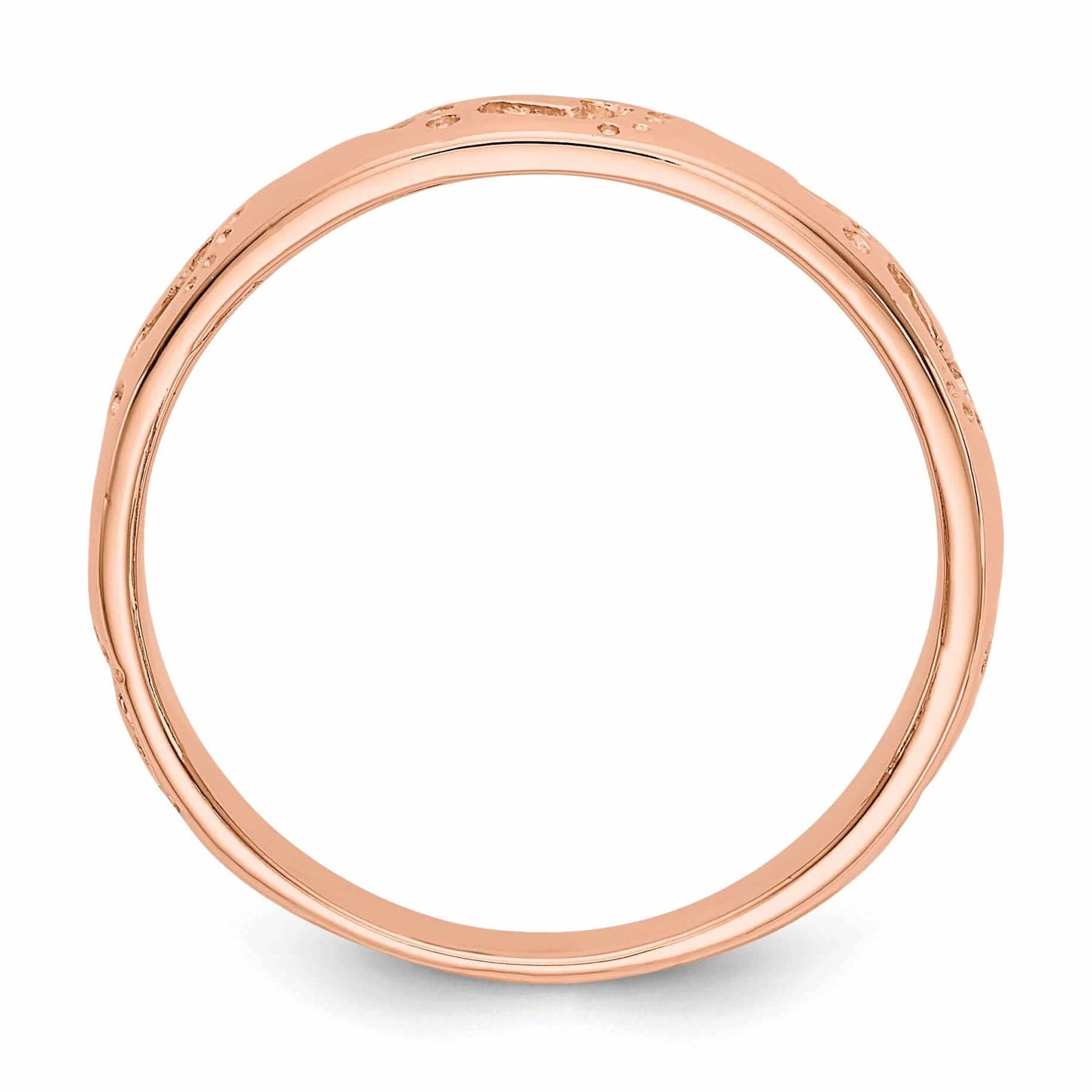 The 14k Rose Gold Timeless Creations Footprints Ring is a stunning and elegant piece of jewelry that will make a beautiful addition to any jewelry collection. This ring is crafted from high quality 14k rose gold, giving it a warm and romantic hue that is both timeless and on-trend.