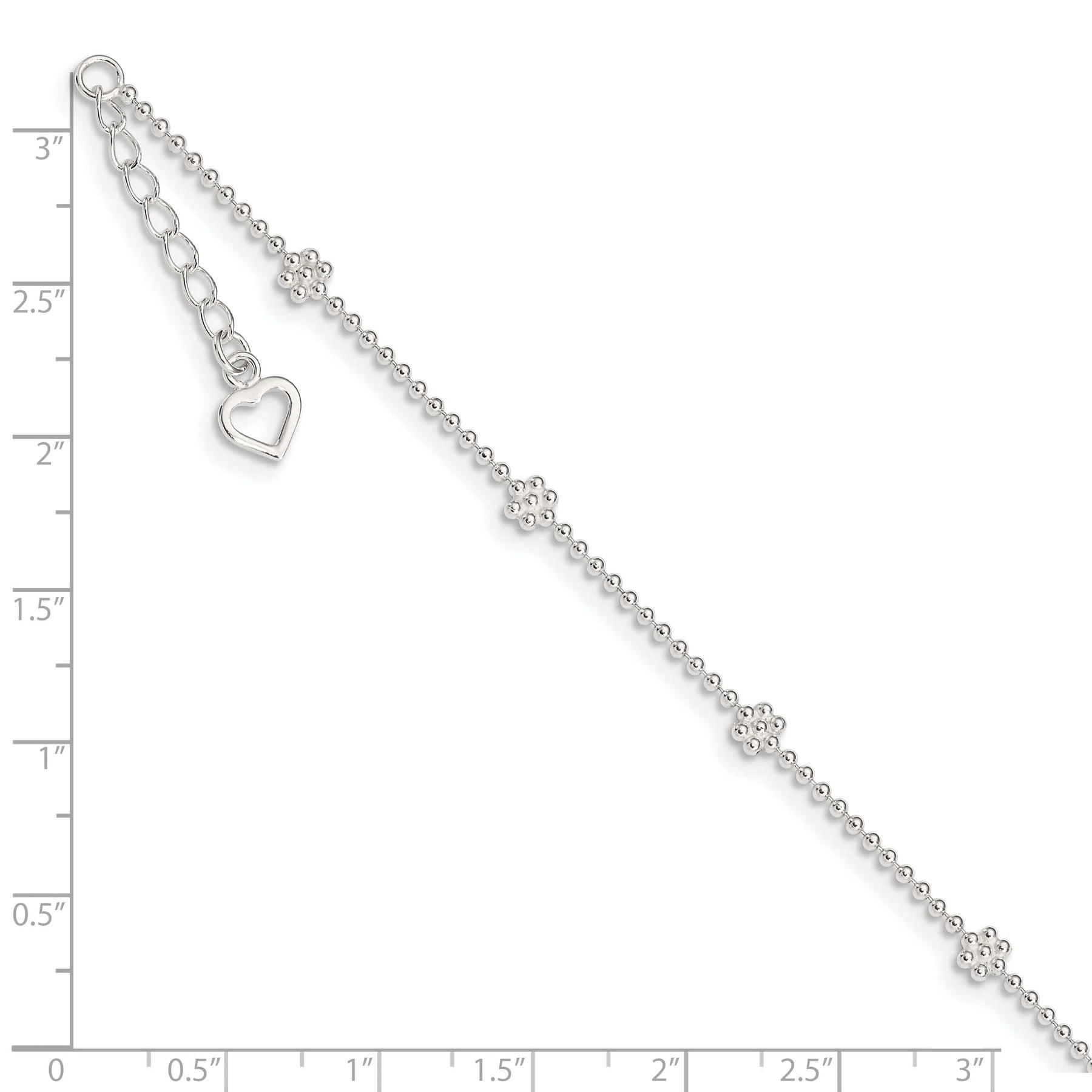 Enhance your ankle with a touch of elegance and charm with our Sterling Silver 10-inch Flower Anklet. This stunning piece features beautifully crafted flowers made of shining sterling silver, sure to catch the eye and add a feminine touch to any outfit.