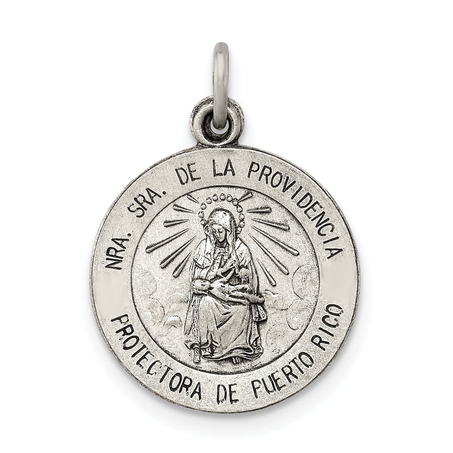 The Sterling Silver Antiqued De La Providencia Medal is a stunning and elegant piece that is perfect for adding a touch of grace and beauty to any outfit. Made from high-quality sterling silver, this medal has been carefully crafted and finished with an antiqued effect to give it a vintage and timeless look.