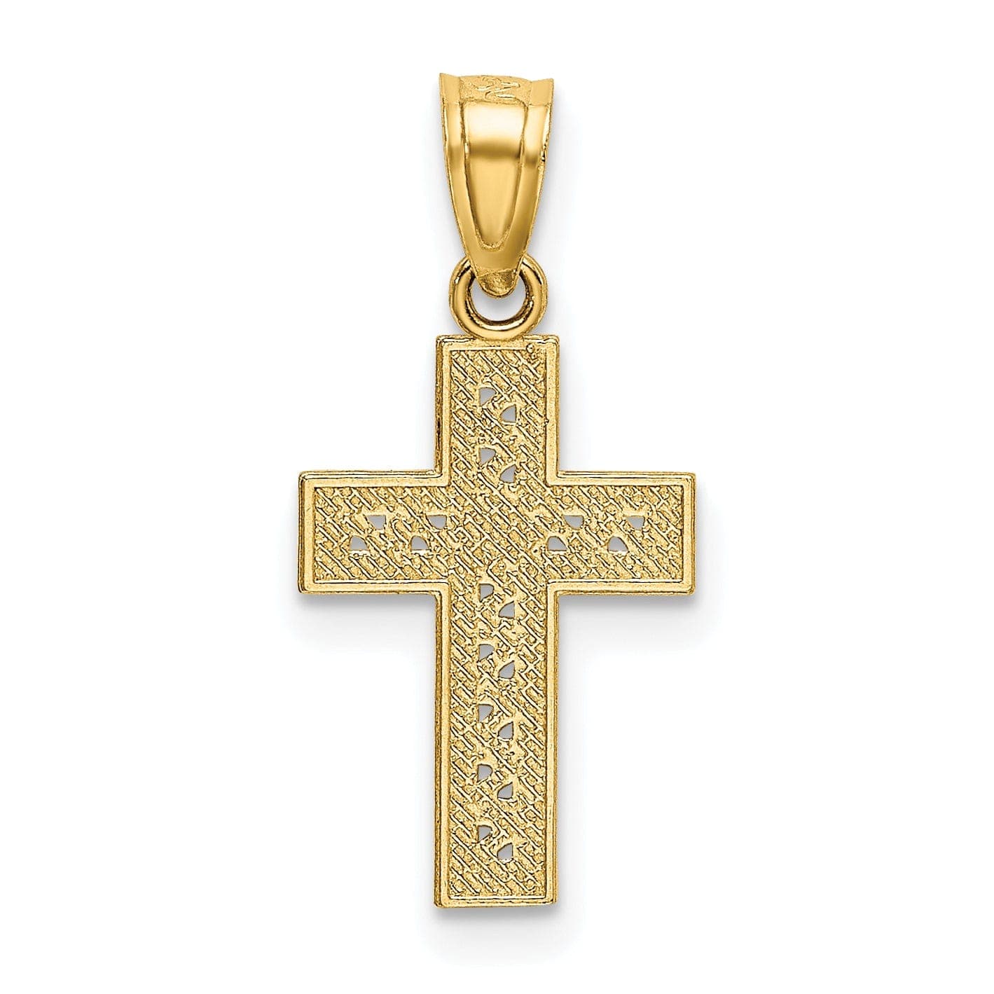 Introducing our stunning 14k Yellow Gold X Center Solid Cross Pendant, a timeless piece of religious jewelry that radiates elegance and grace. Crafted from high-quality 14k yellow gold, this pendant features a solid textured back with a diamond-cut finish that shimmers in the light.