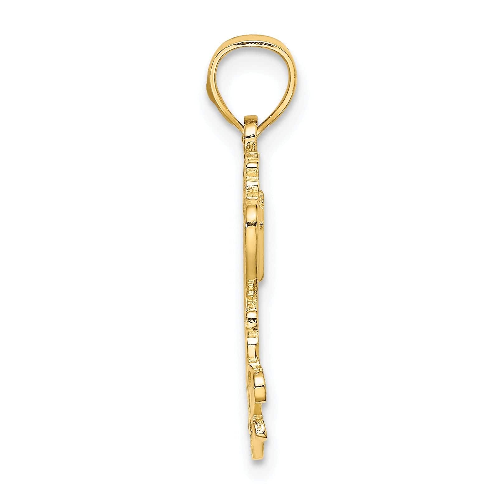 14k Yellow Gold Polished Finish Flat Back #1 AUNT with Heart & Flower Design Charm Pendant