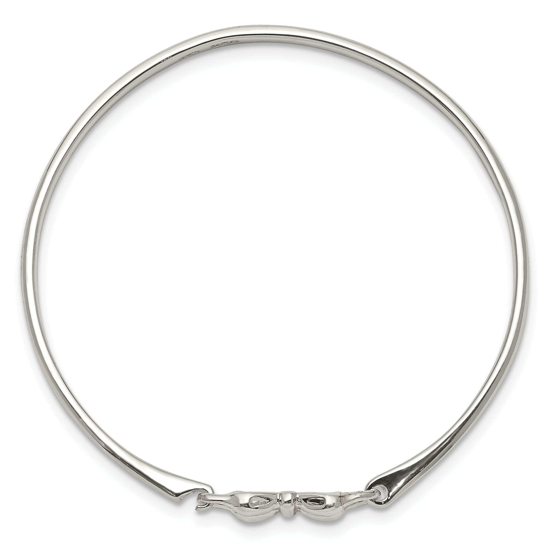 Introducing the Sterling Silver Polished Finish Bow Baby Bangle Bracelet with Hook Clasp, the perfect accessory to add a touch of elegance and charm to your little one's outfit.