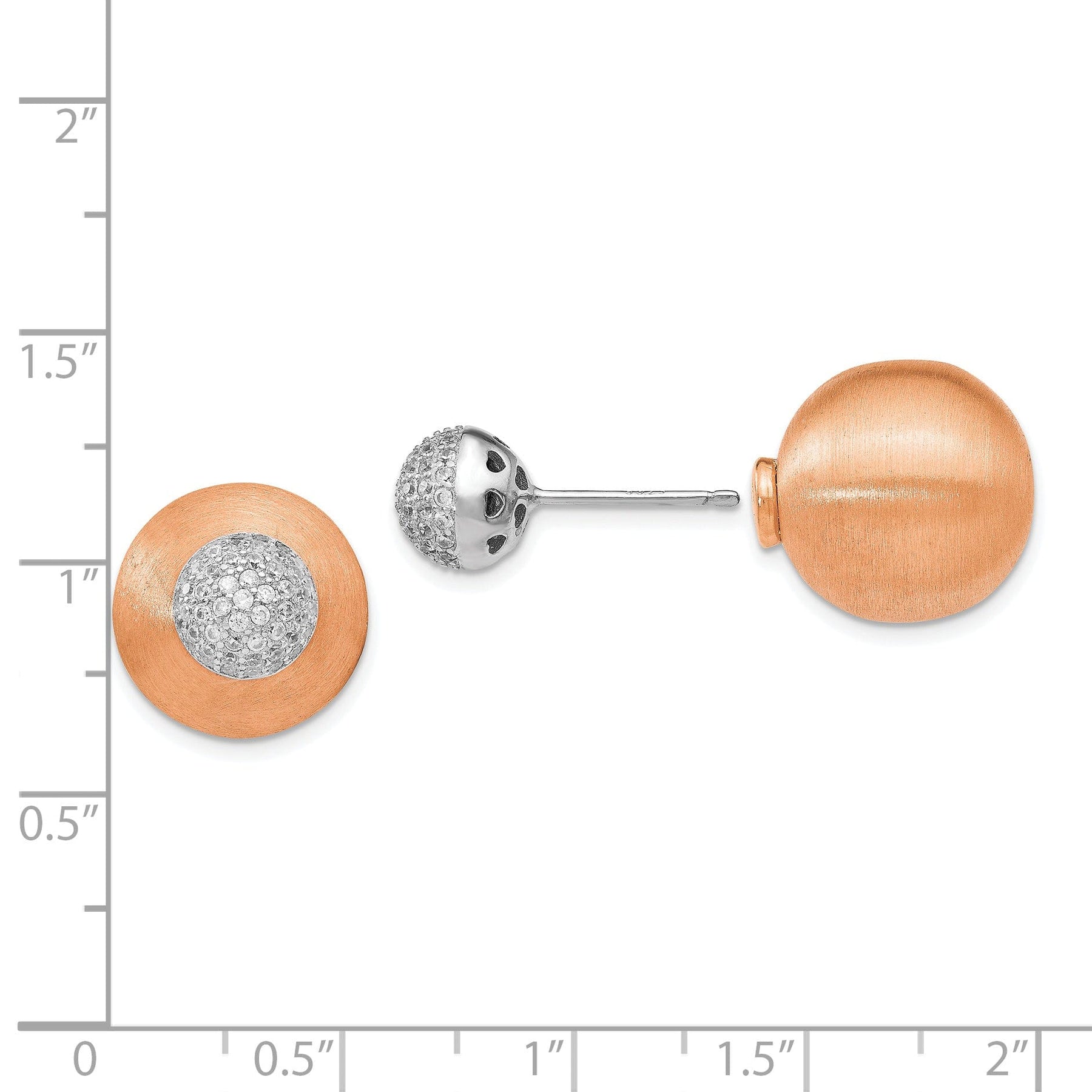 Introducing our stunning Sterling Silver Rose Gold-tone Cubic Zirconia Front Back Earrings!