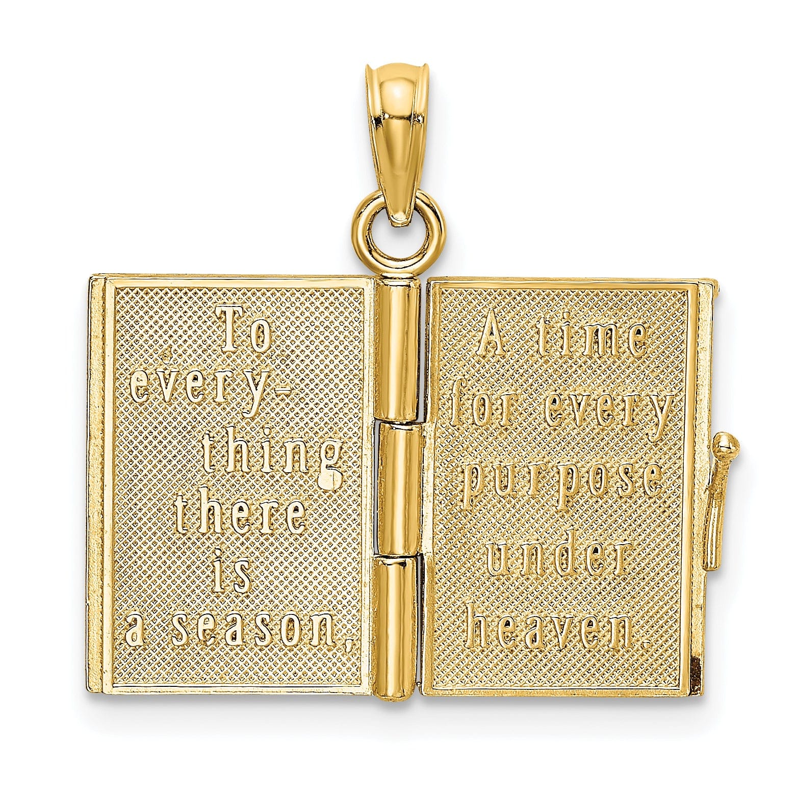 14K Yellow Gold Moveable Pages 3-D Ecclesiastes Book Bible Pendant