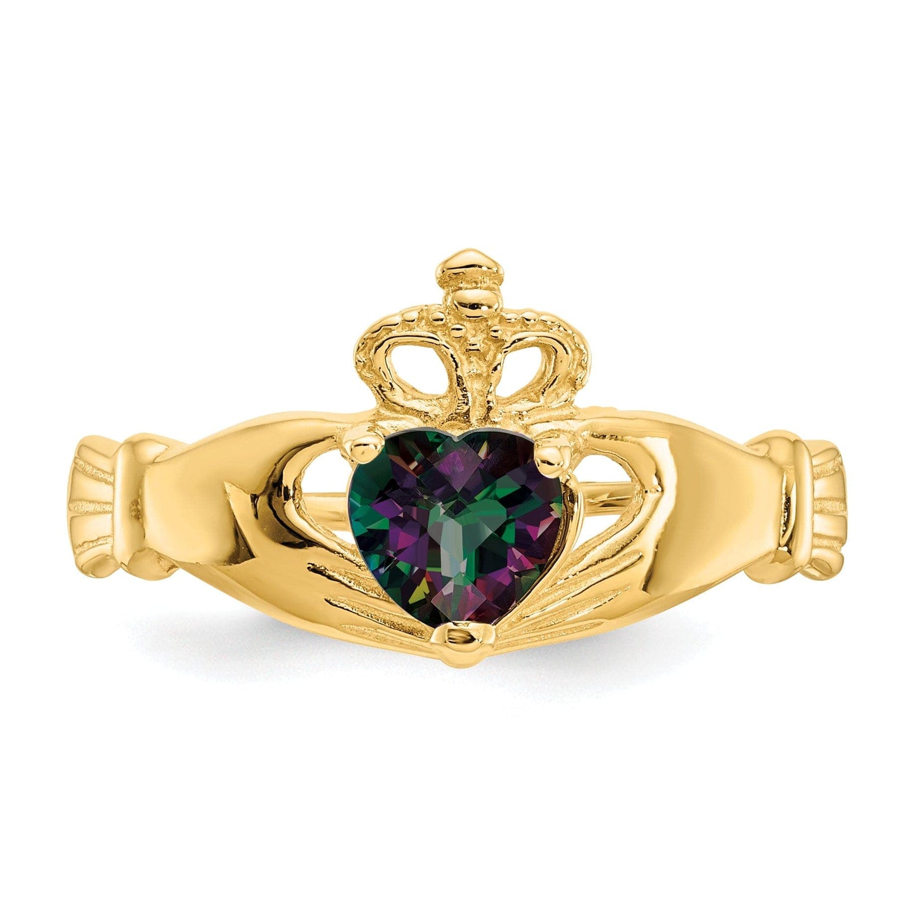 14k Yellow Gold CZ June Birthstone Claddagh Heart