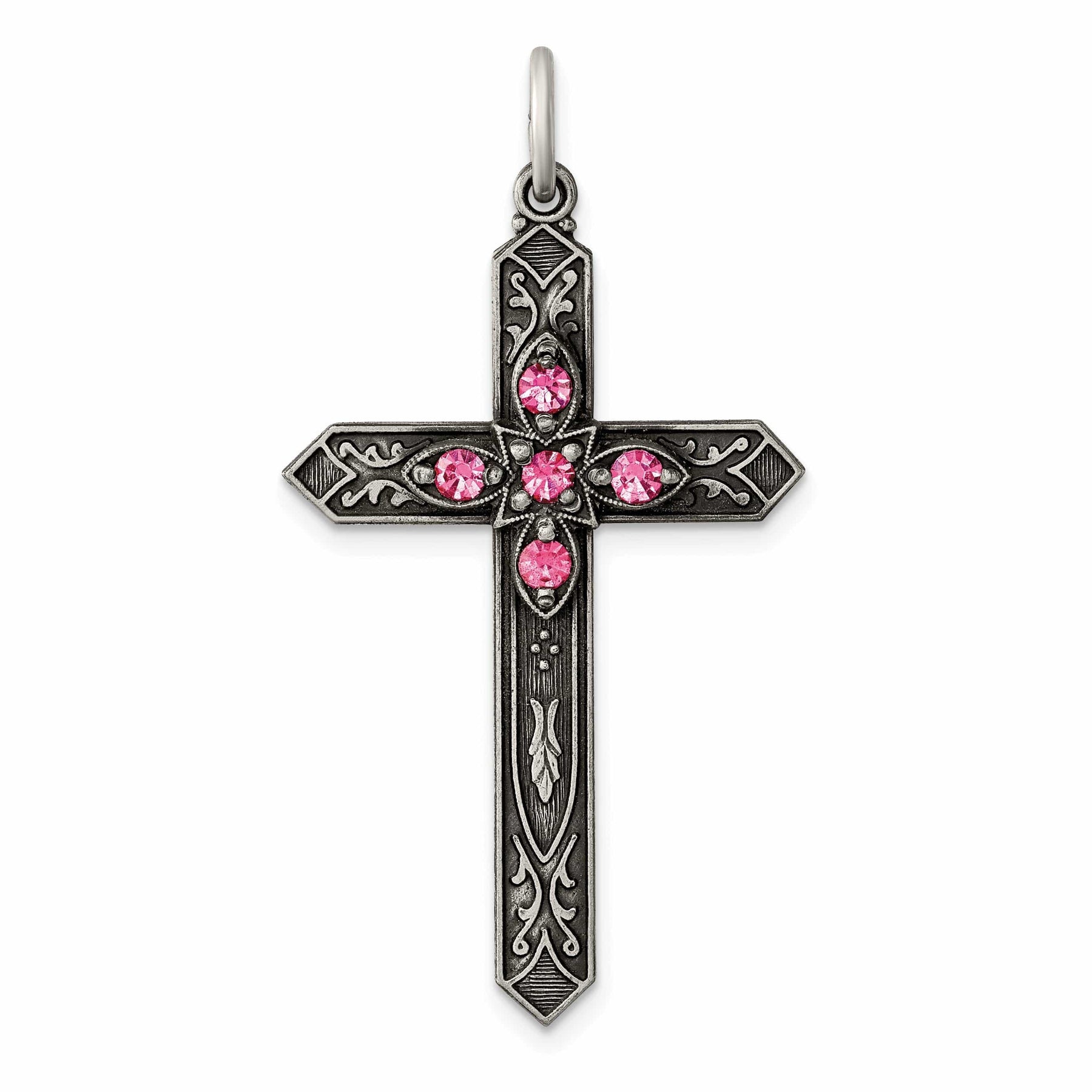 This Silver Antique October Birthstone Cross Pendant is a truly unique and meaningful piece of jewelry. Whether you are looking to treat yourself or need a thoughtful gift for someone special born in October, this pendant is sure to be cherished for years to come. Add this stunning piece to your jewelry collection today and let your faith and style shine bright.