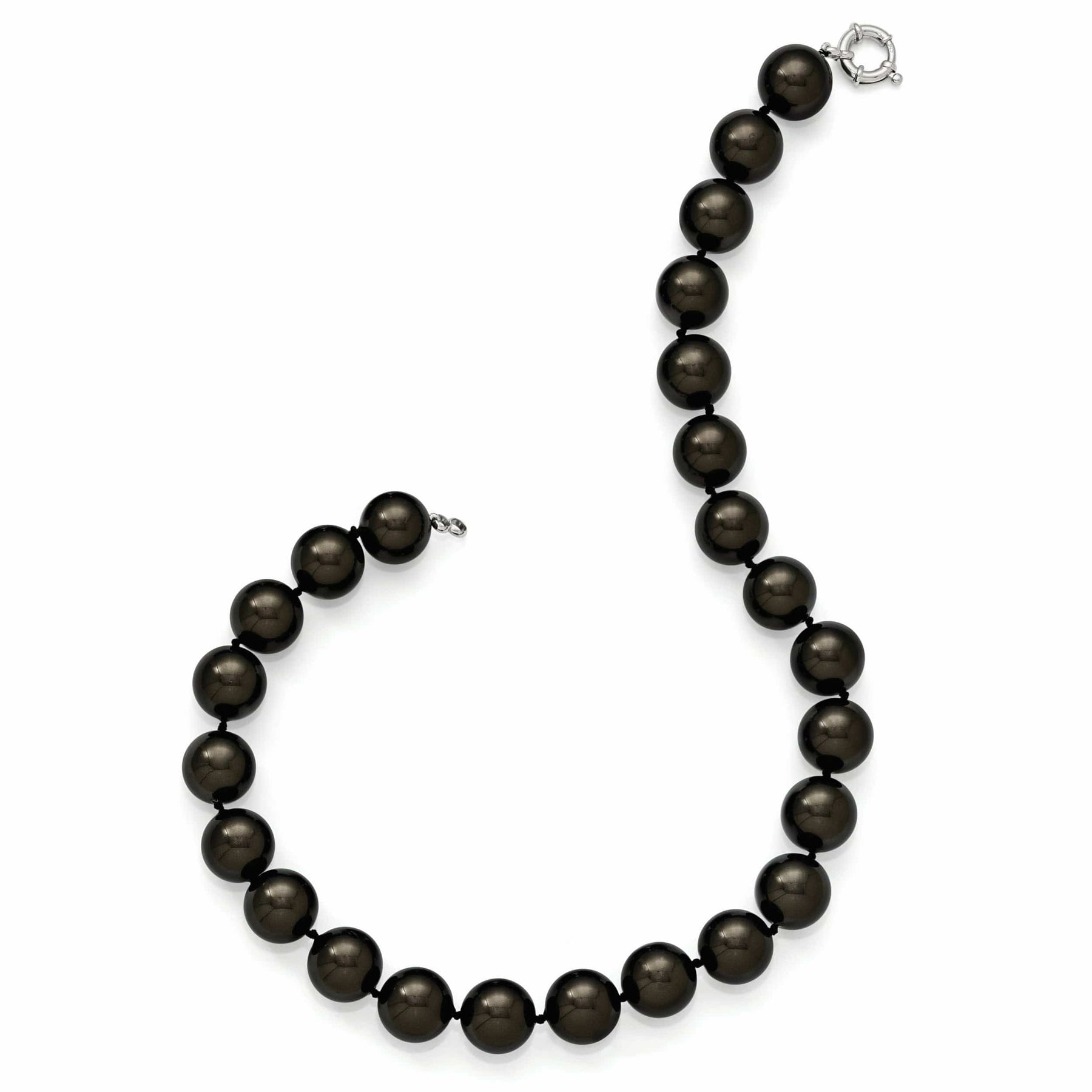 Indulge in pure elegance with our Majestik Black Pearl Hand Knotted Necklace. Crafted with precision and care, this exquisite piece features stunning sterling silver accents and 1 and 1 black shell pearls that add a touch of sophistication to any outfit.