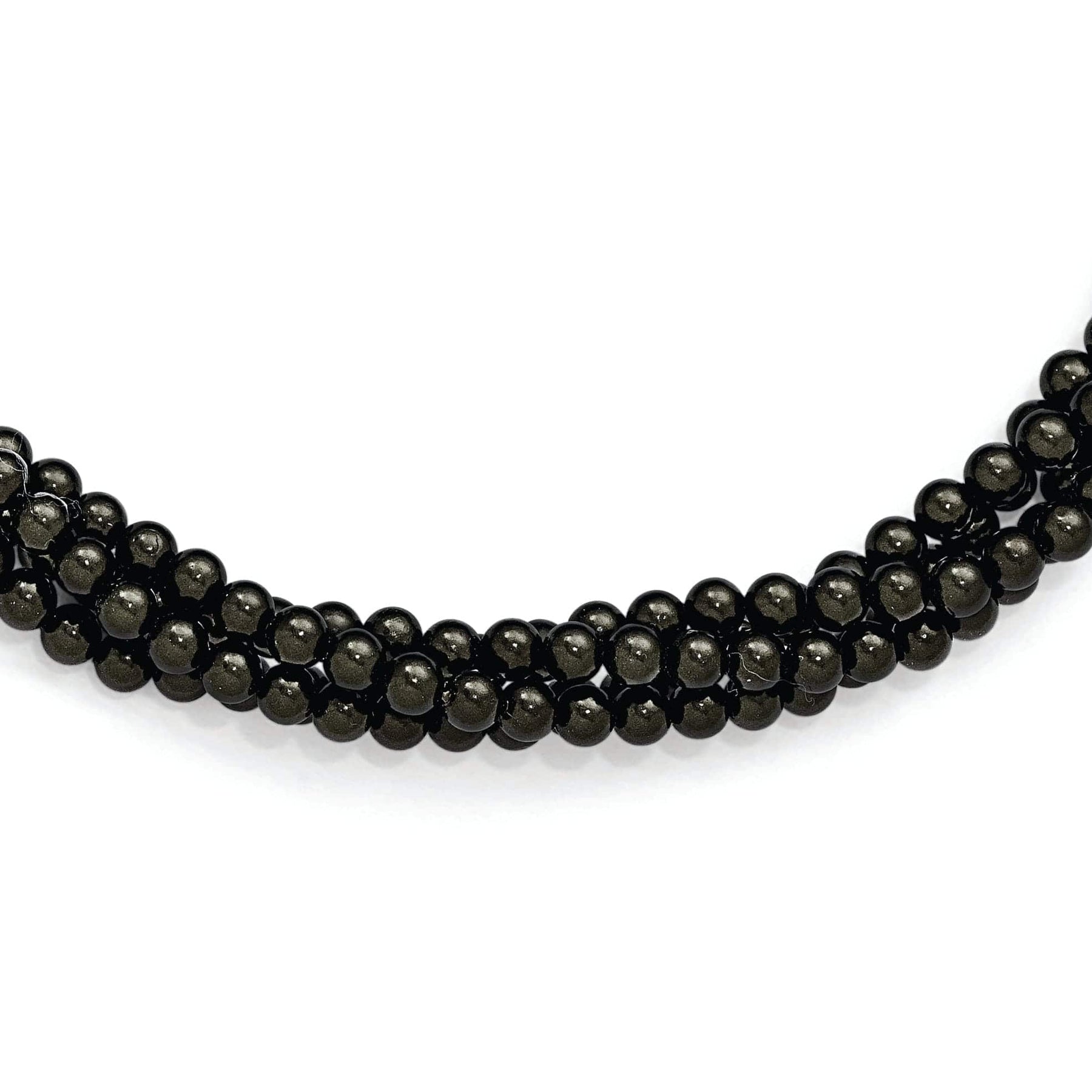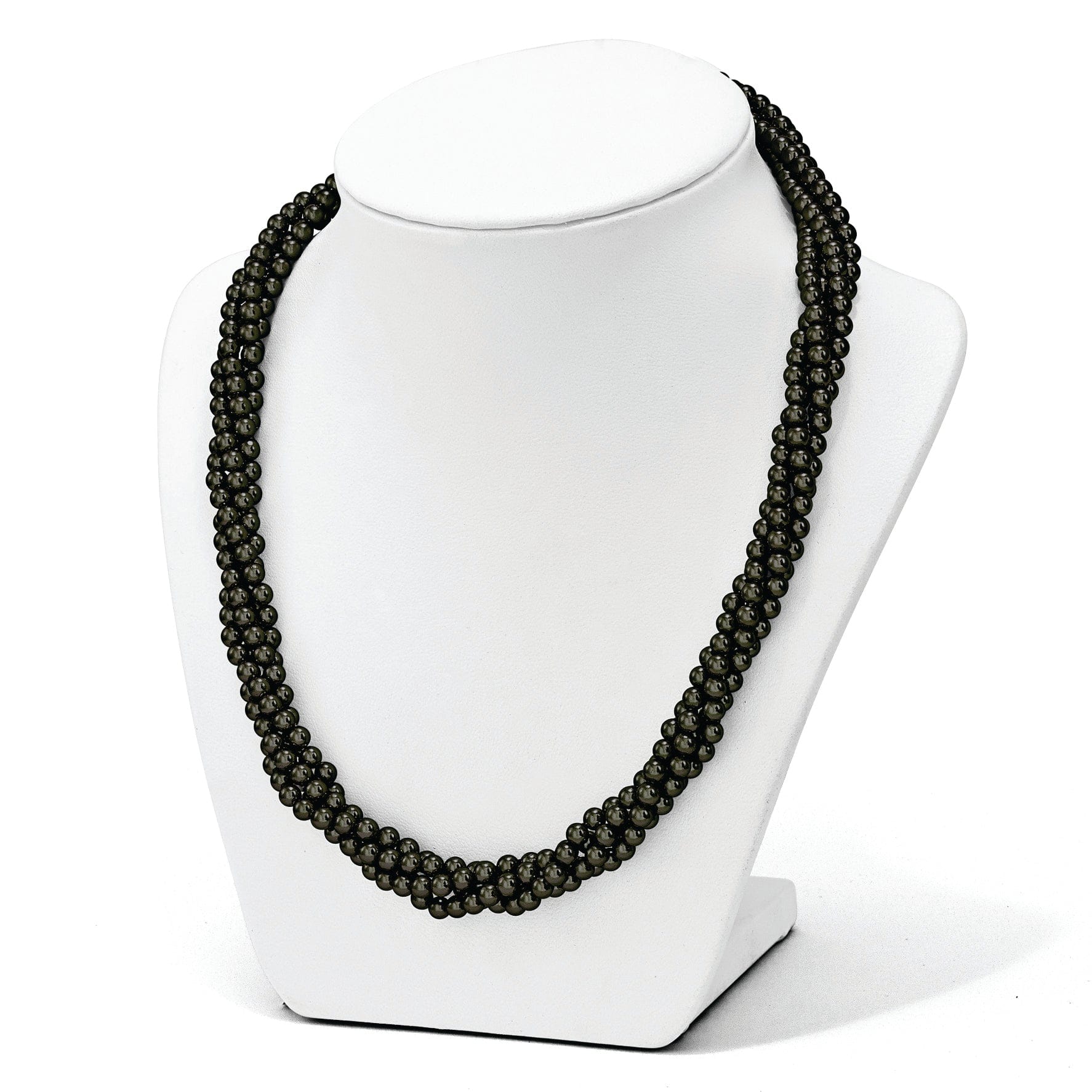 Elevate your jewelry collection with our stunning Majestik Black Shell Pearl Twisted Necklace. Made with top-quality sterling silver, this necklace features four strands of lustrous black shell pearls that are expertly twisted together for a unique and eye-catching design.