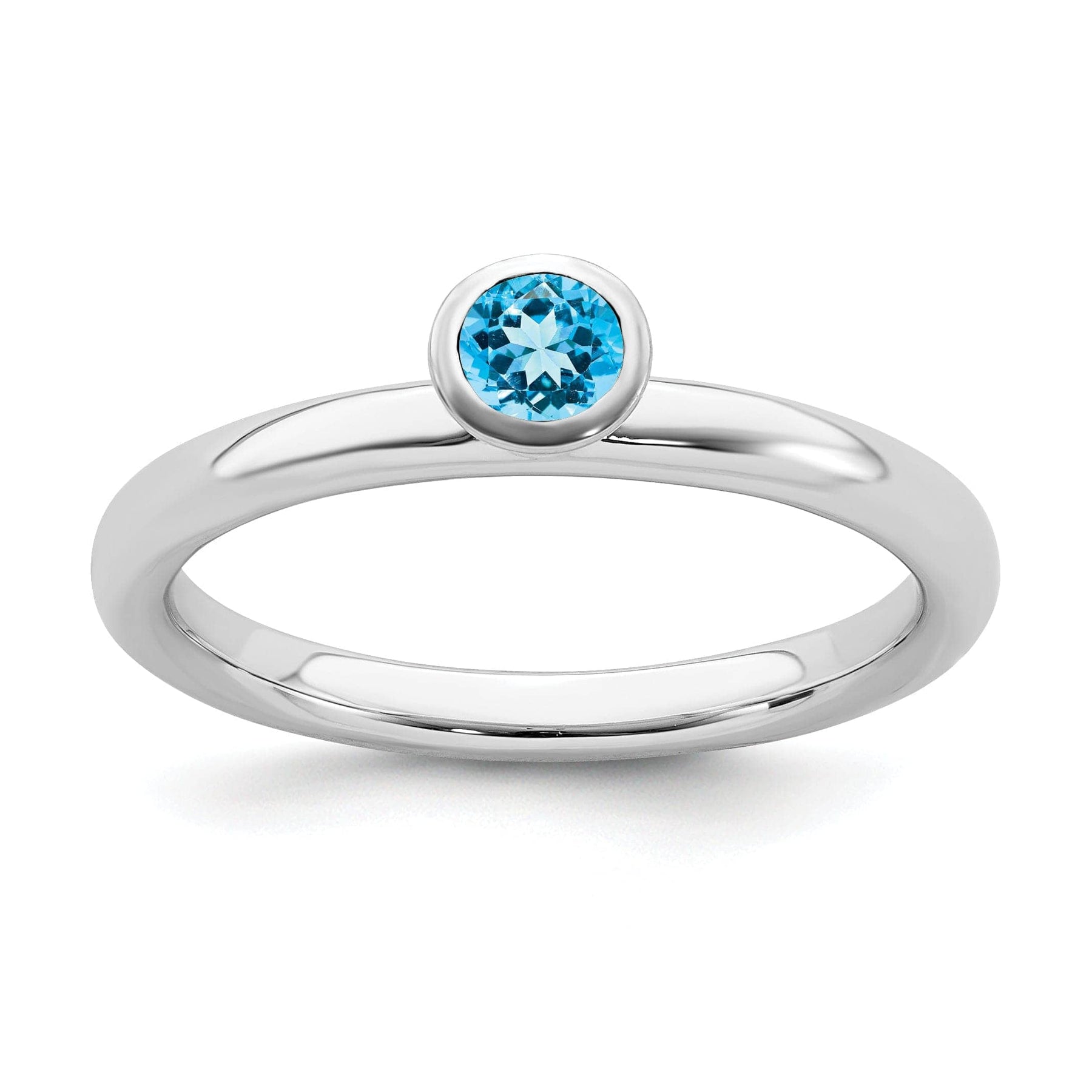Stackable Expressions Ring Size 5 Sterling Silver High 4MM Round Blue Topaz Ring