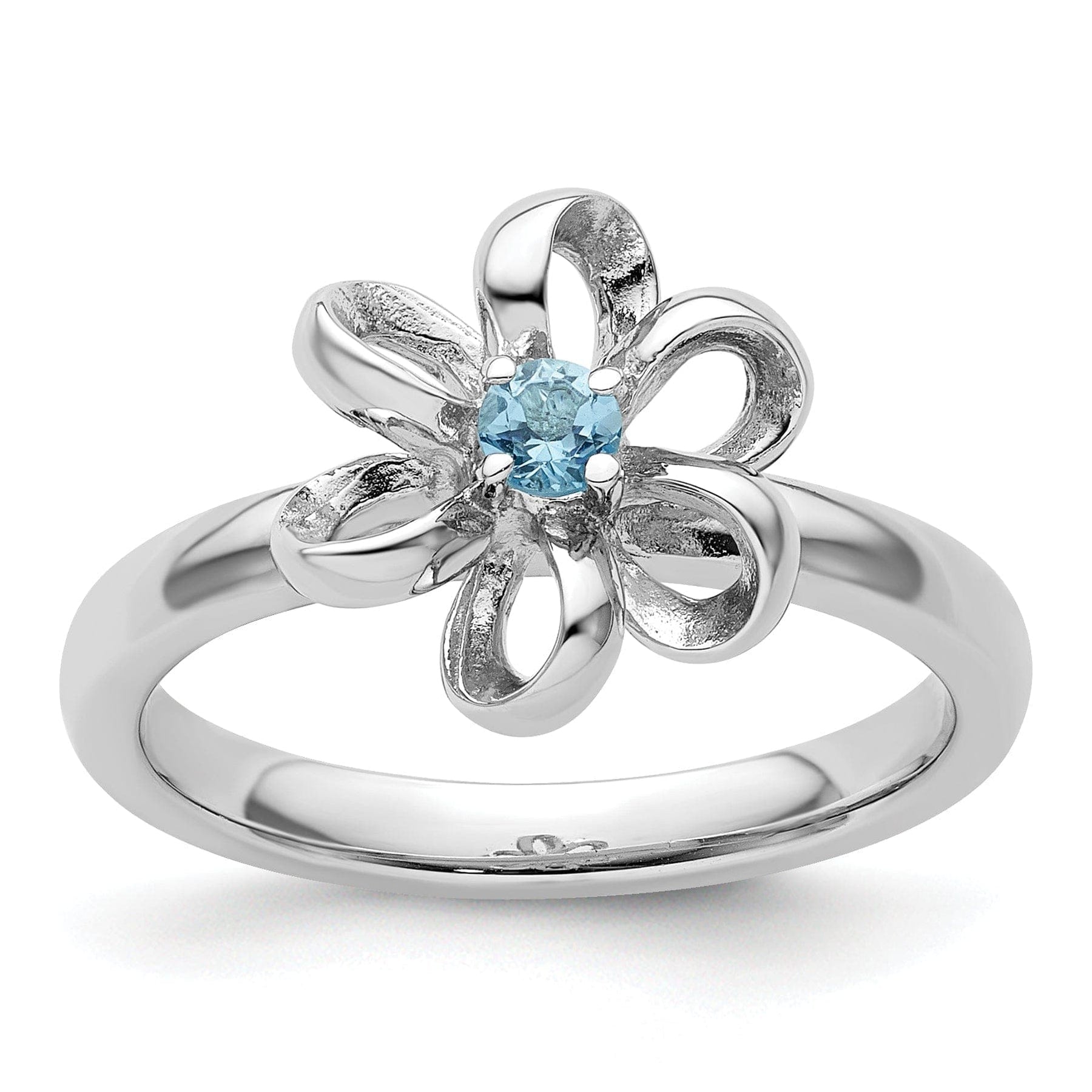 Elevate your style with this exquisite Sterling Silver Polished Blue Topaz Flower Ring. This stunning piece features a delicate flower design with a dazzling blue topaz stone at its center. Crafted from high-quality sterling silver, this ring is both elegant and durable, making it the perfect addition to your jewelry collection.