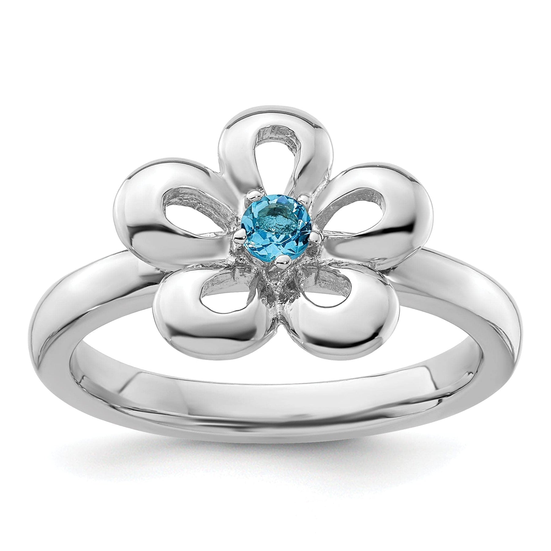 Introducing our exquisite Sterling Silver Polished Blue Topaz Flower Ring, a true gem for any jewelry collection. This stunning ring features a delicate flower design adorned with a beautiful blue topaz gemstone at its center. Crafted from high-quality sterling silver, this ring is both elegant and durable, making it the perfect accessory for everyday wear or special occasions.