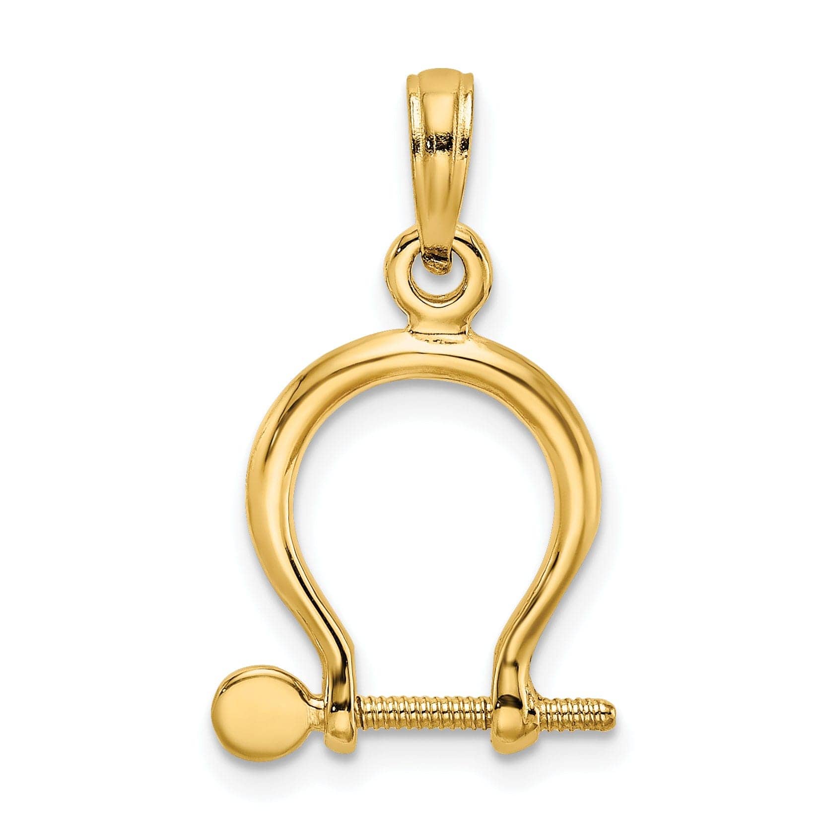 14K Yellow Gold Polished Finish 3-D Small Ship Shackle Link Screw Charm